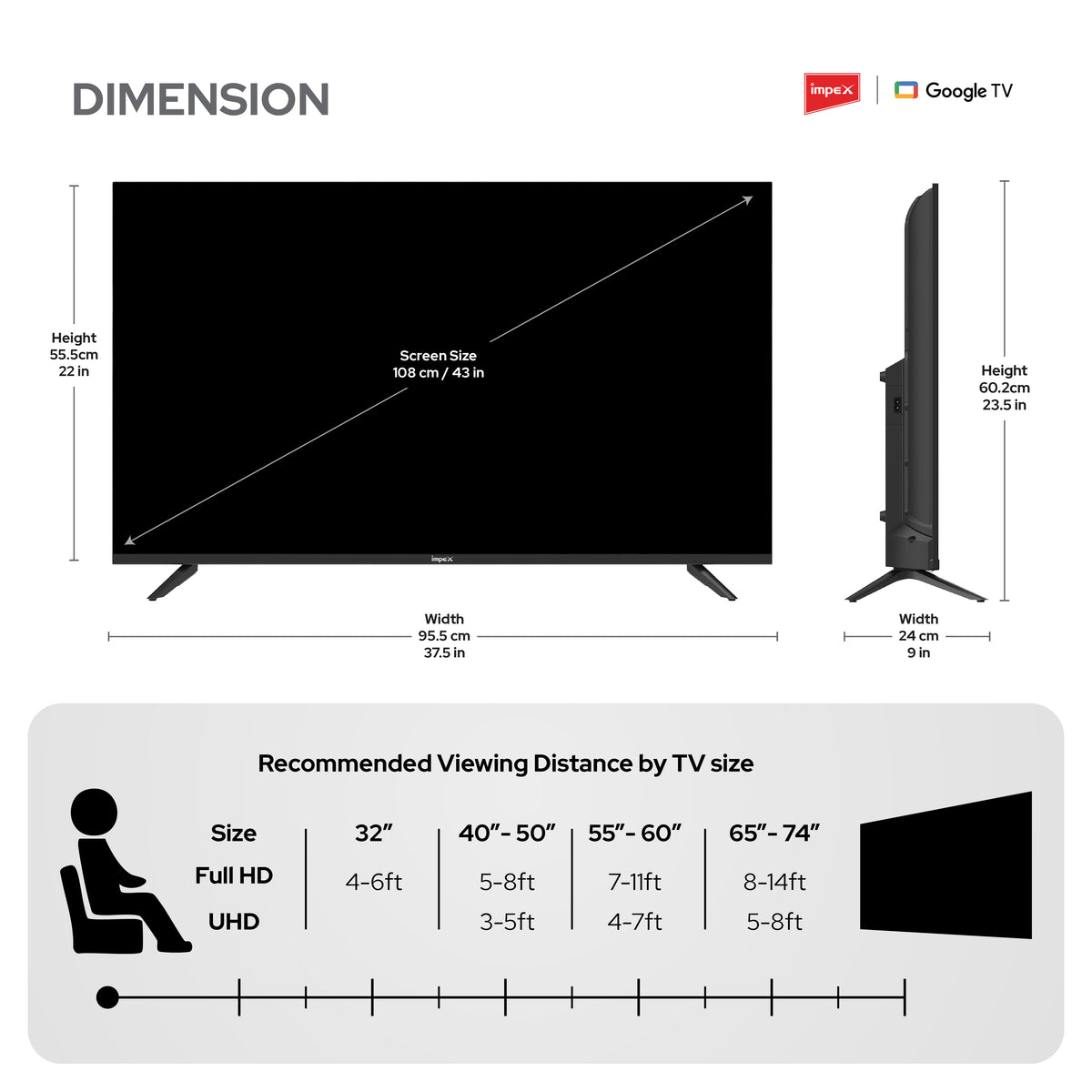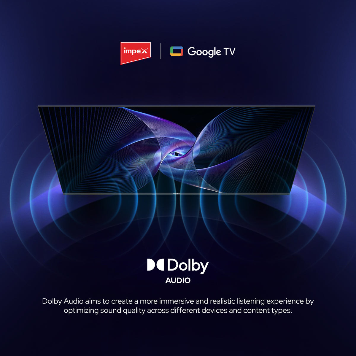 Discover a new level of smart entertainment with the Impex evoQ 43-inch Full HD LED Smart TV. This television brings your favorite content to life with its stunning Full HD display and HDR10 support for enhanced contrast and vivid colors. The powerful 24W speakers with Dolby Audio deliver a rich, clear sound experience, making every movie, show, and playlist more engaging. Powered by the latest Google TV (Android 14), this TV provides a seamless and personalized interface with effortless access to all your favorite apps and content. With a robust 2+2 year warranty, this TV is built for both performance and peace of mind.