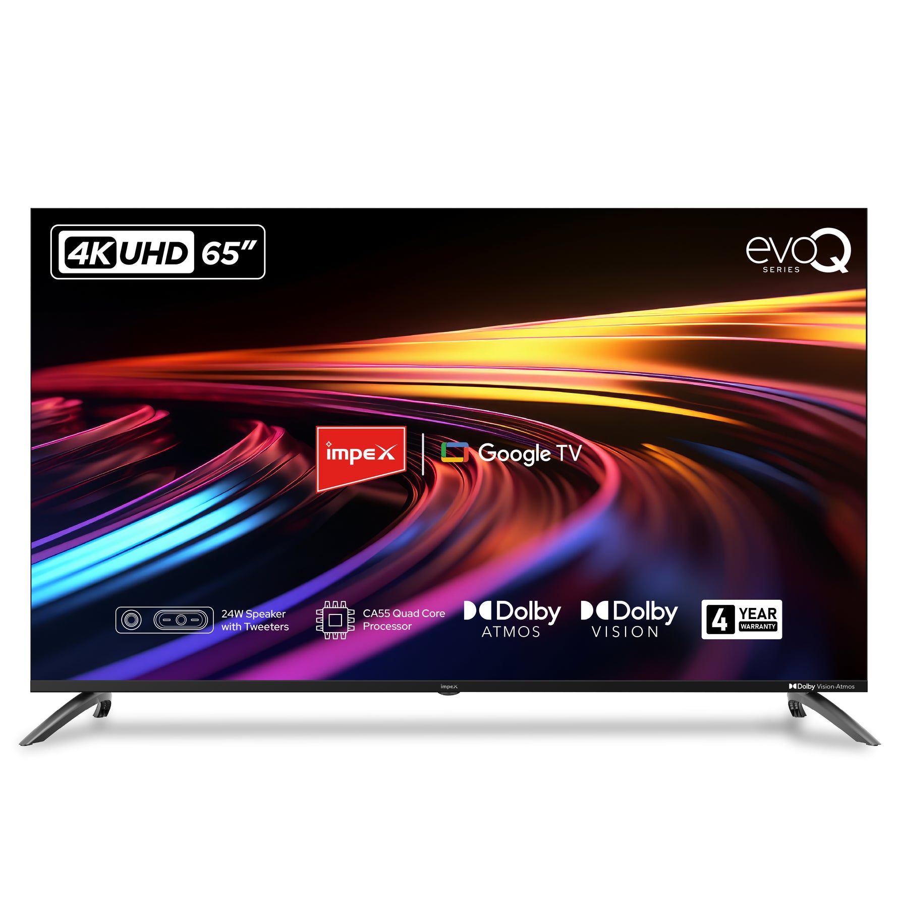 Impex evoQ 65-inch 4K UHD Smart Google TV with Dolby Vision, Dolby Atmos, and 2+2 Year Warranty (Black)