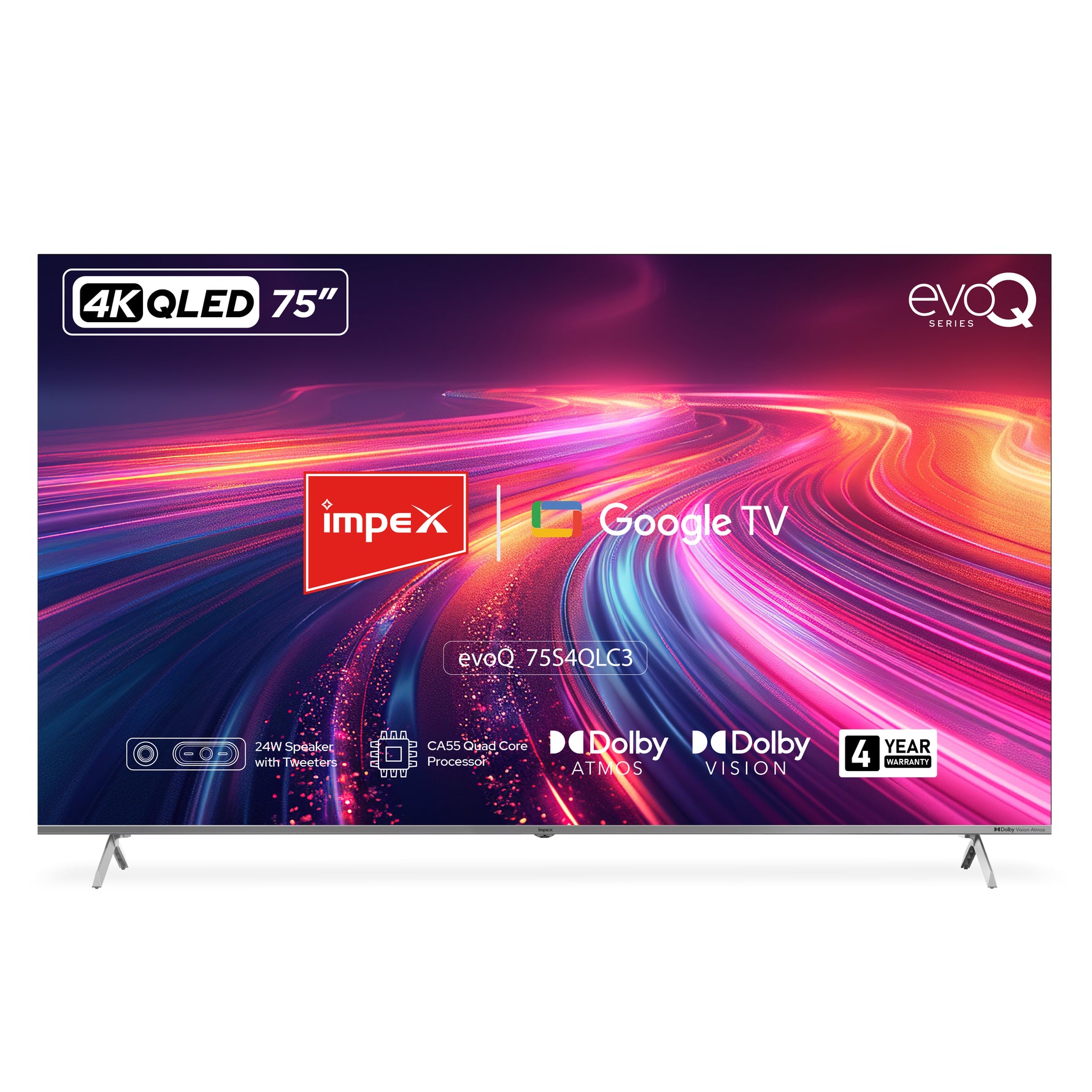 IMPEX|evoQ 75S4QLC3| 75"|4K QLED|GoogleTV|HDR10|120Hz DLG|Dolby Vision|Dolby ATMOS|ALLM|MEMC|24W SPEAKER|4 Year Warranty