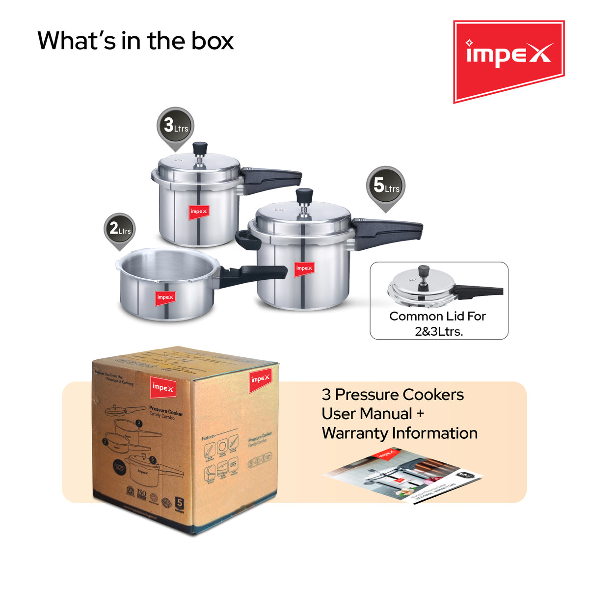 IMPEX Induction Base Combo 2 L, 3 L, 5 L Aluminium Induction Bottom Pressure Cooker