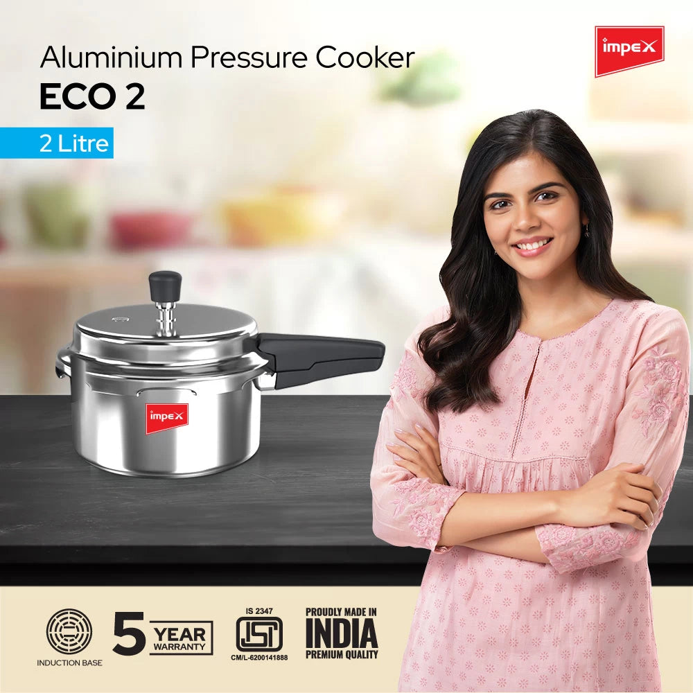 Impex ECO 2 Induction Base Outer Lid Aluminium Pressure Cooker, 2 litres, Silver