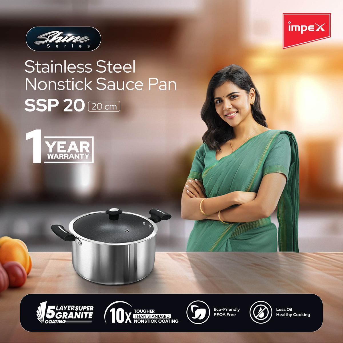 Impex Shine(SSP 20) Stainless steel Non-stick Sauce Pan 20 cm