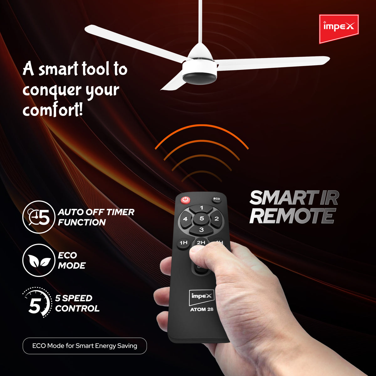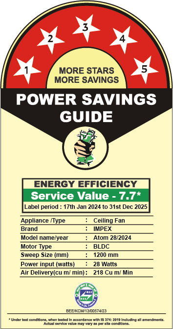 Impex BLDC Ceiling Fan ATOM 28 5 Star Rated Ceiling Fans for Home with Remote Control | Upto 65% Energy Saving High Speed Fan Having 5 Years Warranty (Matte White)