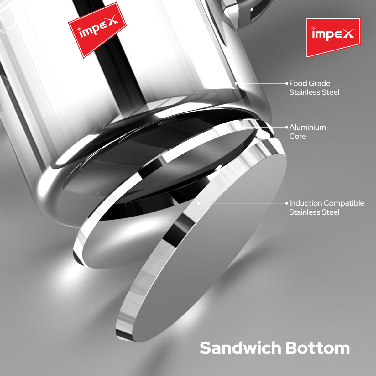 Induction Bottom: Compatible with both gas stoves and induction cooktops for quick and efficient heating.
