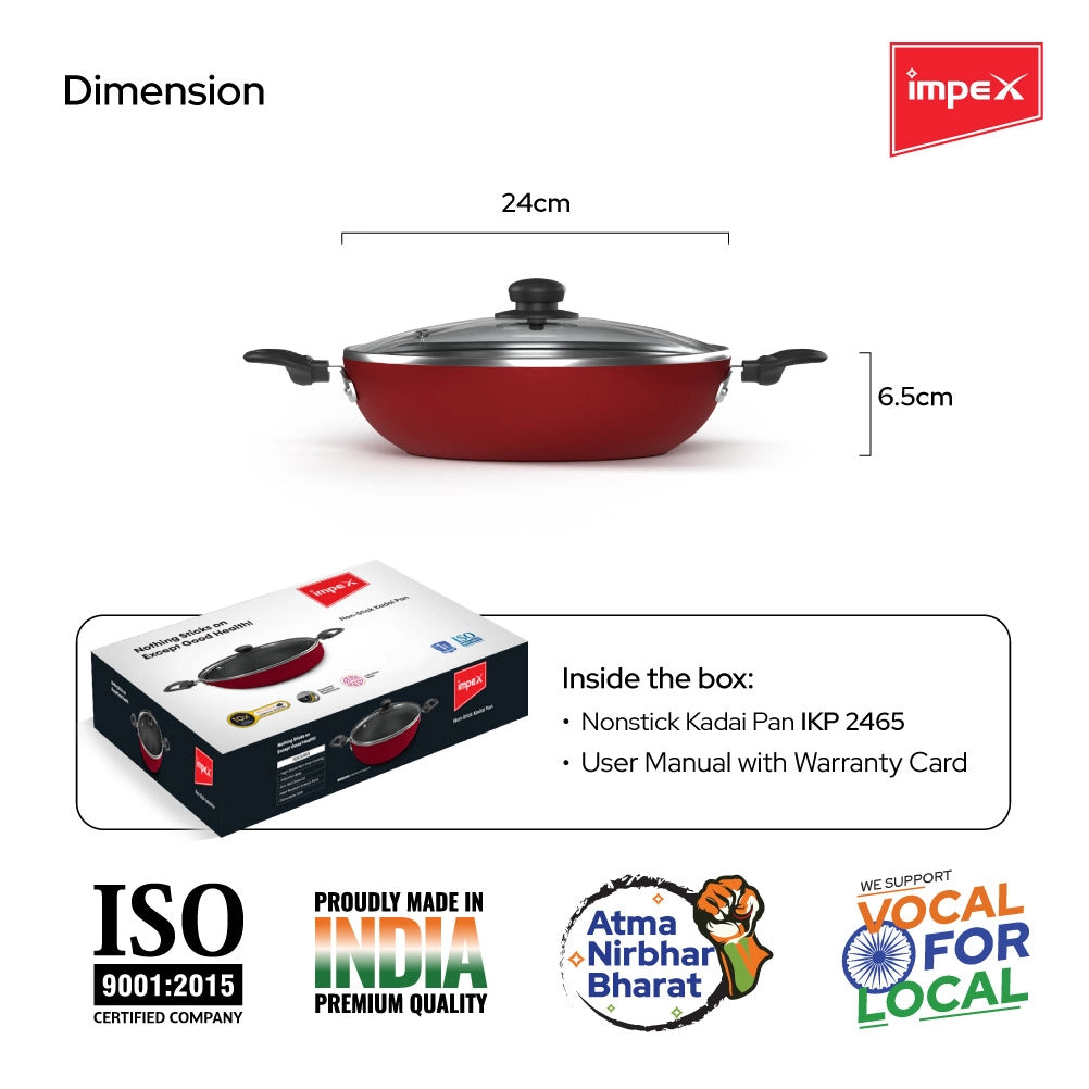 Impex Premium Induction Base Nonstick Aluminium Kadai Pan (IKP-2465)