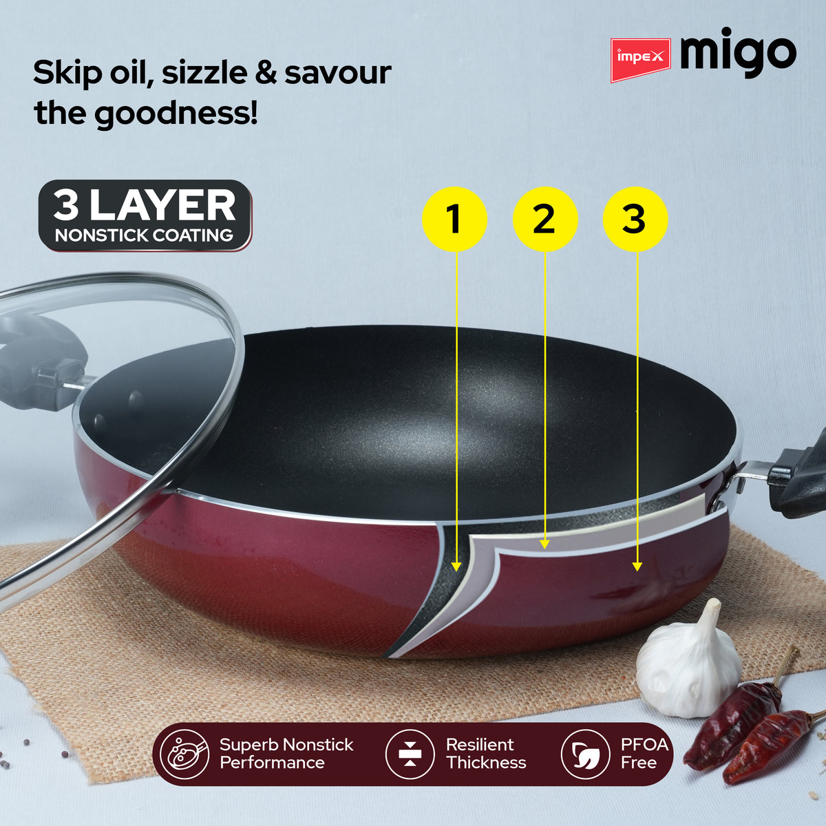 | Included Components | Tawa, Fry Pan, Kadhai with lid |