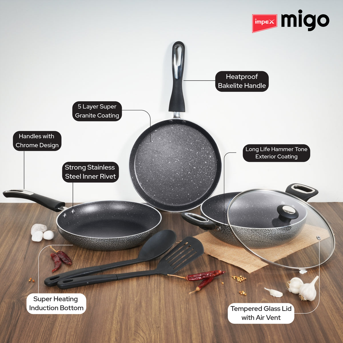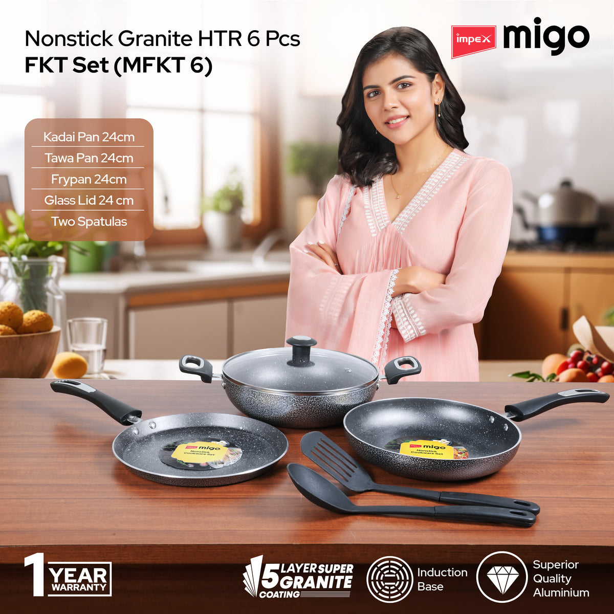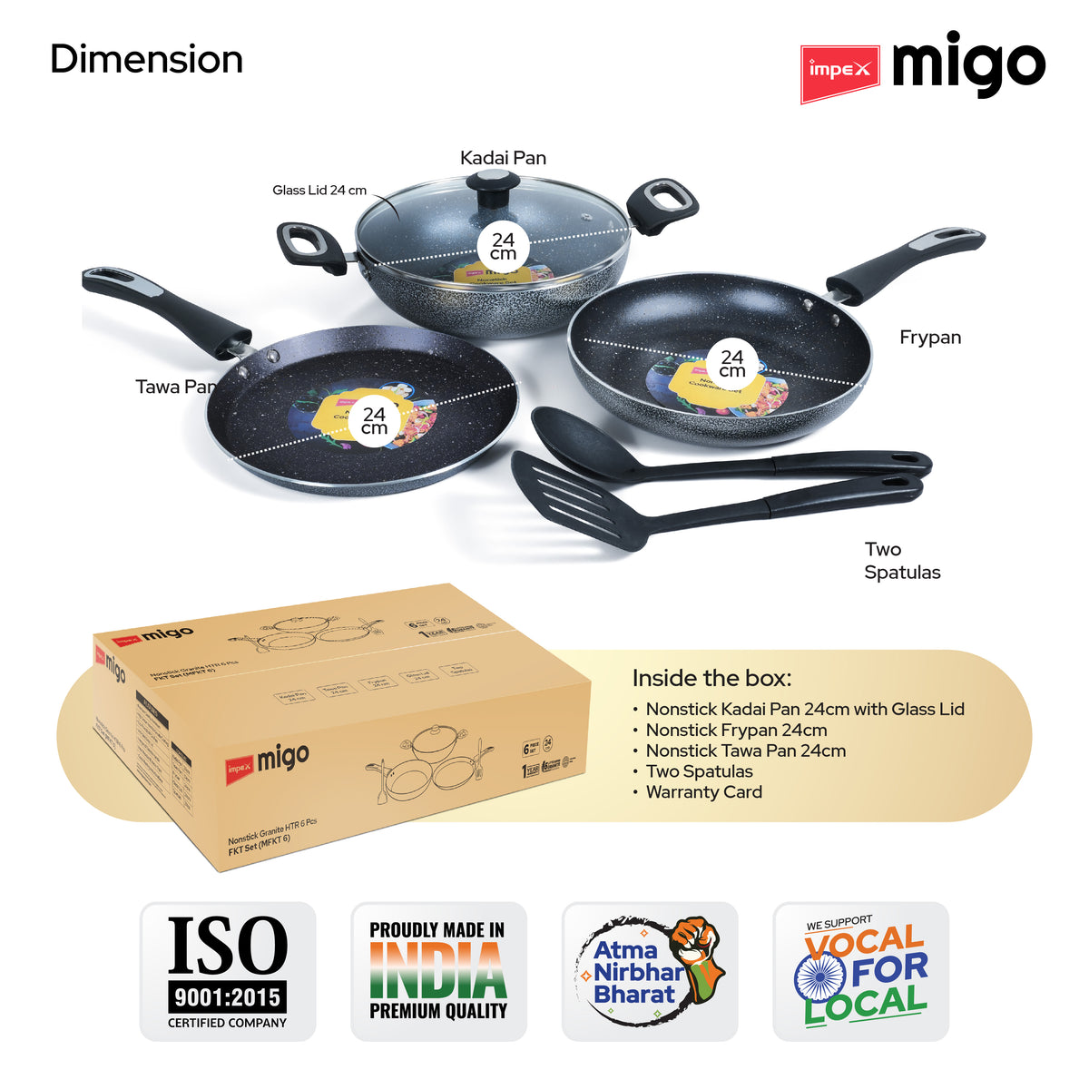 IMPEX Migo Nonstick Granite 6 Pcs Festival Gift Set MFKT(6), 5 Layer Super Granite Induction Bottom