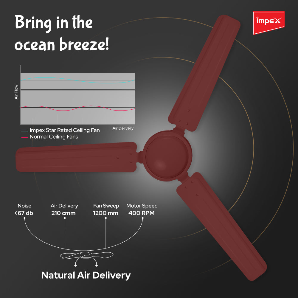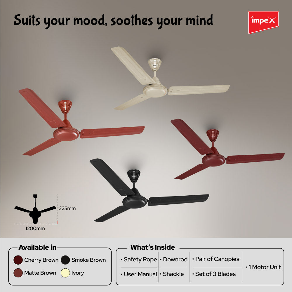 Impex Whizstar 1200 mm Ceiling Fan for Home, High Speed Fan Having 2 Years Warranty (Cherry Brown)