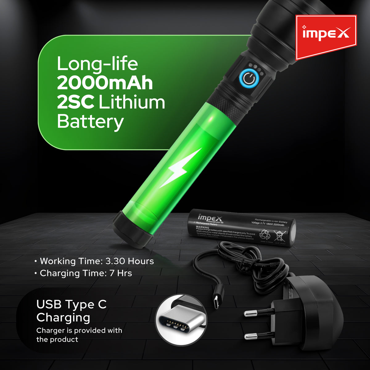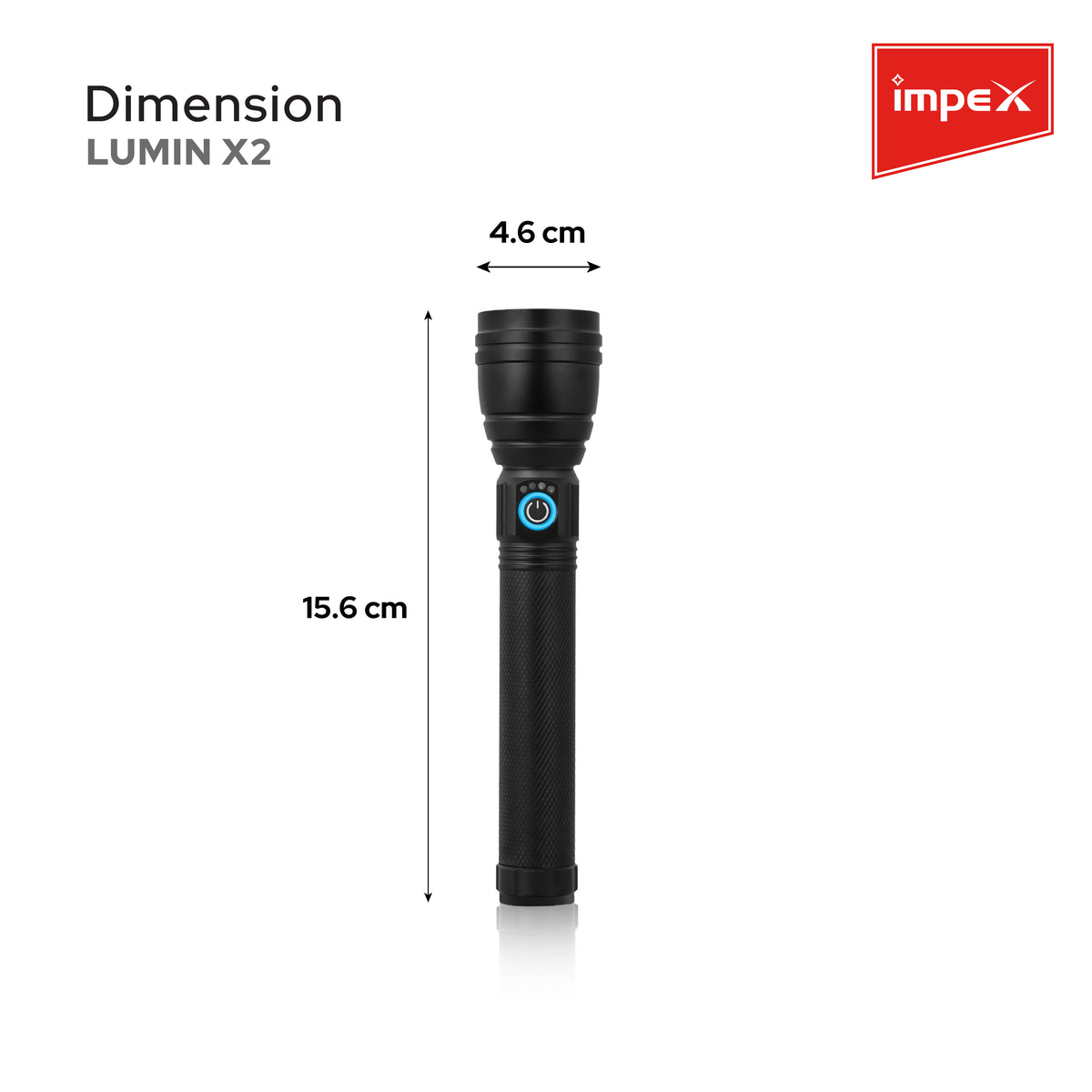 Impex Lumin X2 Rechargeable Torch | Aircraft Aluminum, 220 Lumens, 2000mAh Li-ion Battery, Type-C Charging, 3 Modes
