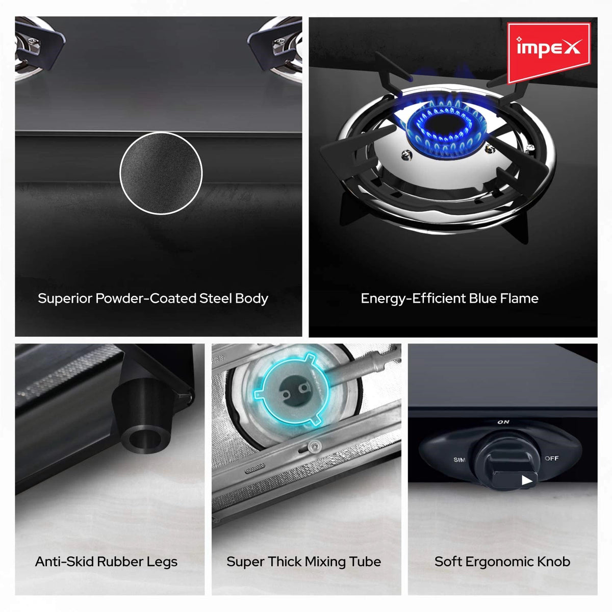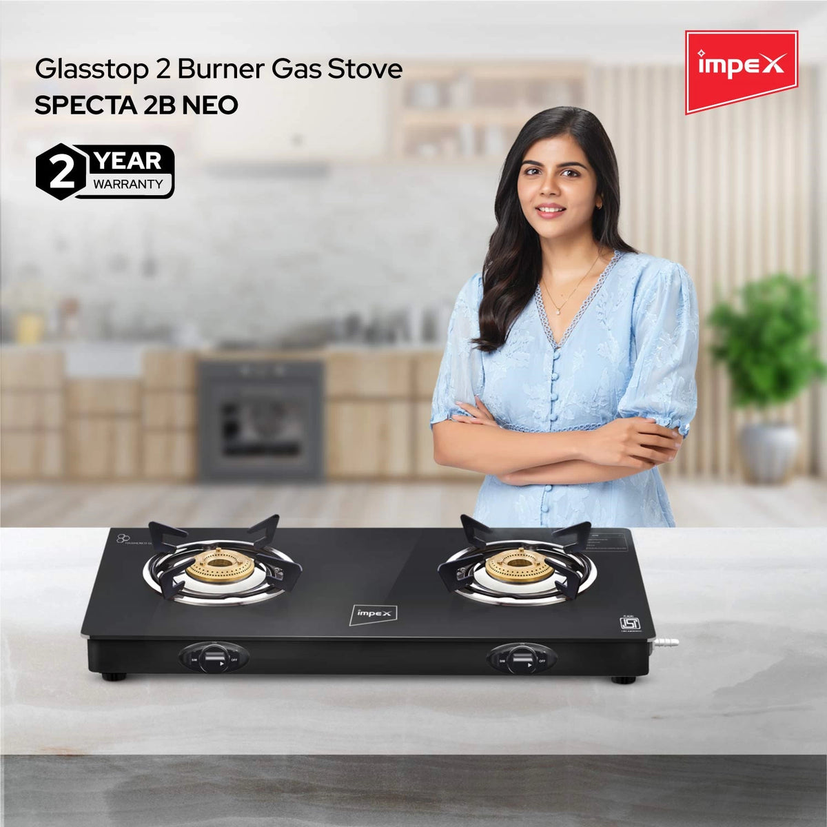 Impex SPECTA 2B NEO 2 Burner Black Premium Finish Gas Stove