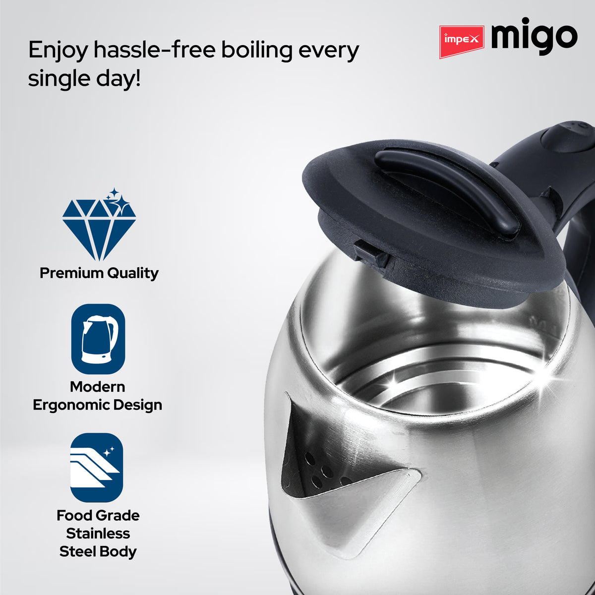 Impex Migo Inferno Stainless Steel Electric Kettle 1.8 Litre 1500 Watts 1 Year Warranty