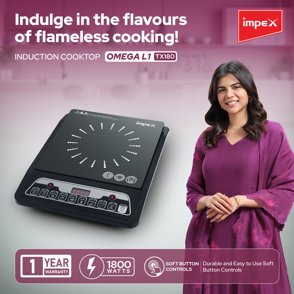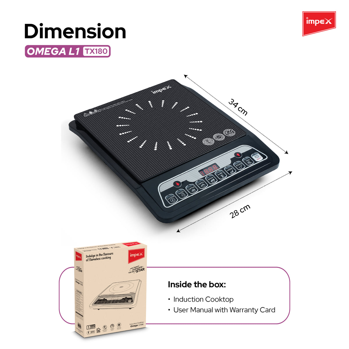 Impex OMEGA L1 TX180 Induction Cooker with 1800W Power | 6 Cooking Modes, LED Display & Timer