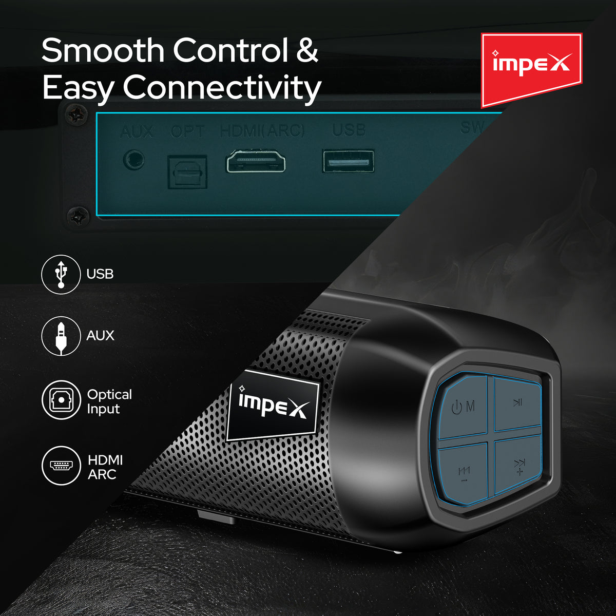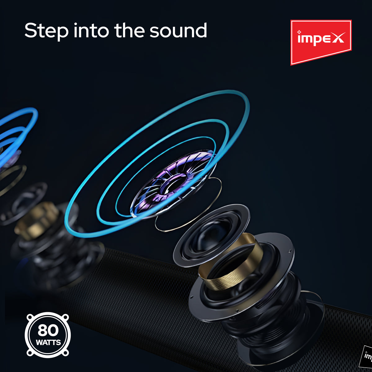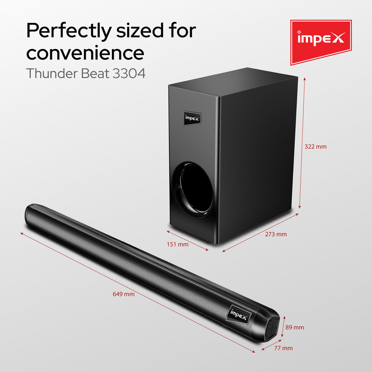 Impex Thunder Beat 3304 80W Soundbar with Subwoofer, Bluetooth 5.3, Multiple Inputs, Wall Mountable - Black | 1 Year Warranty