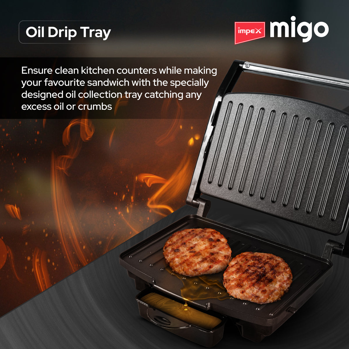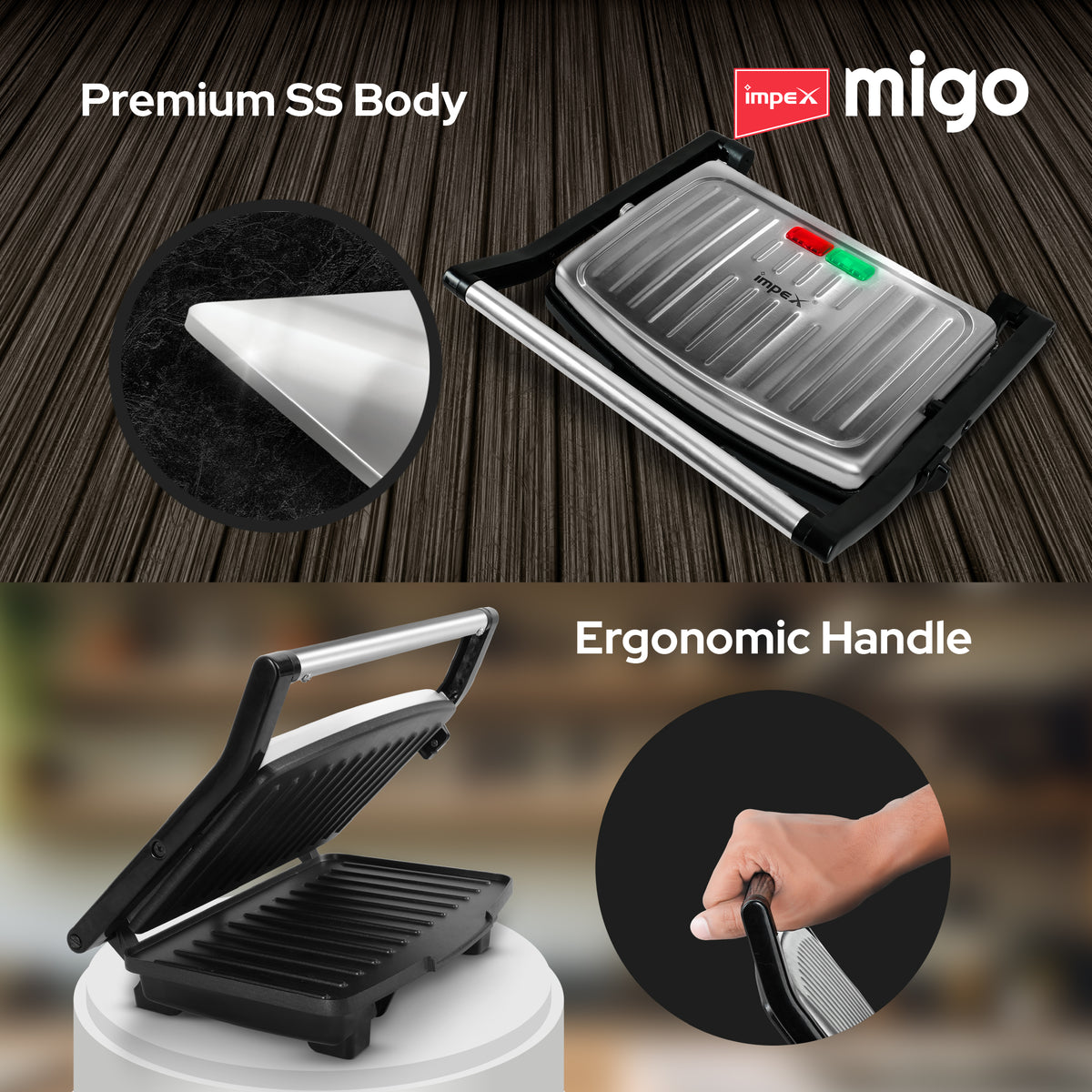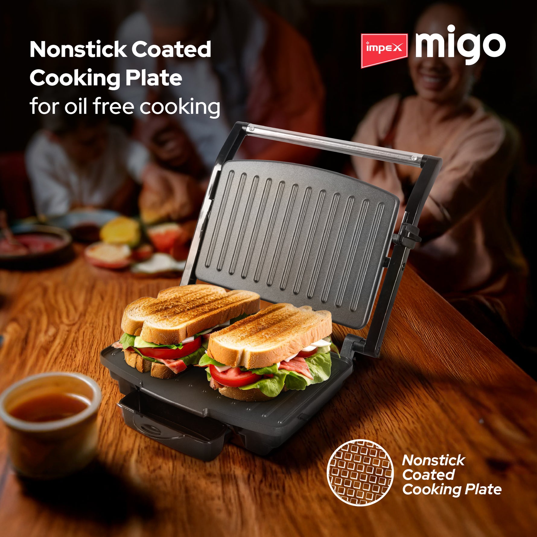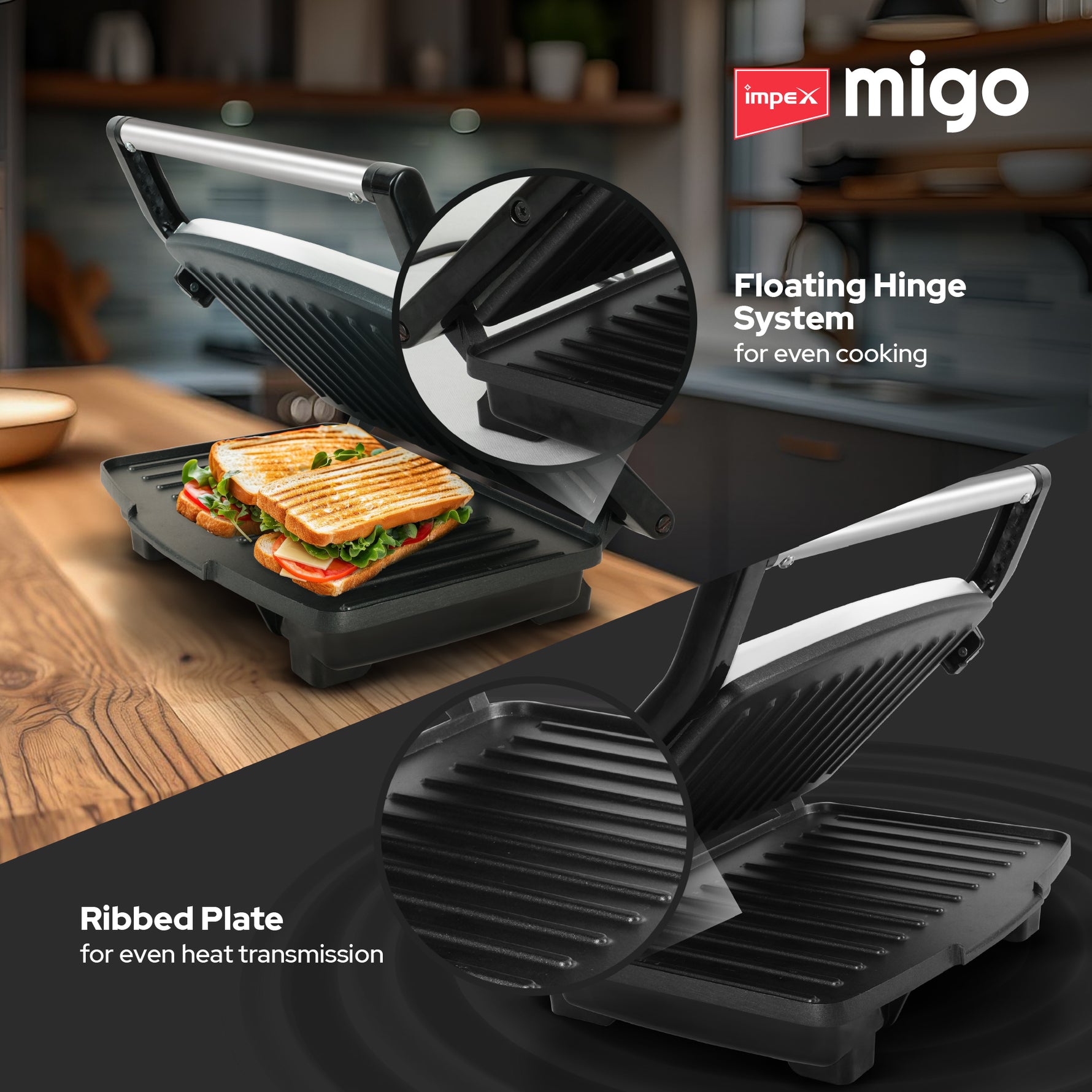 Impex Eazytoast Panini & Sandwich Maker with Floating Hinge System, 1000W Power, and Premium Stainless Steel Body (Black and Steel Finish)