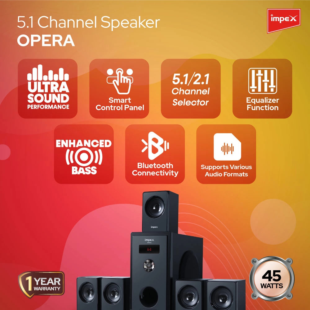 Impex 5.1 Channel Multimedia Speaker System(Opera 45)