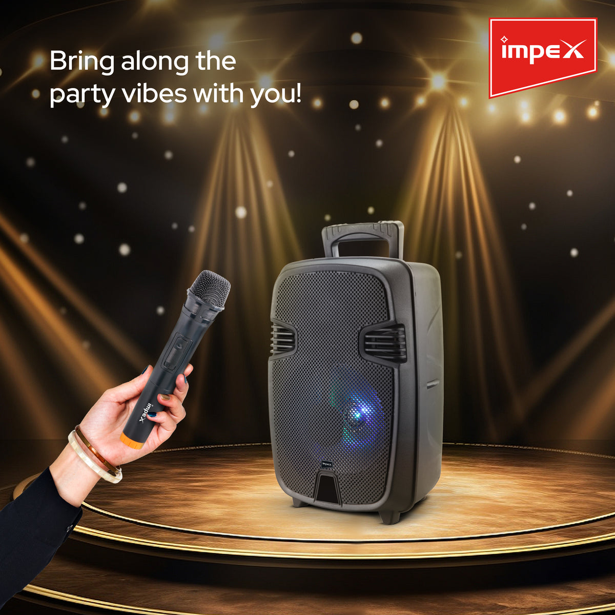 Impex Portable Speaker TS 2020 With Wireless Mic, Supports AUX, Bluetooth, USB, TF, FM Radio, 1 Year Warranty(Black)