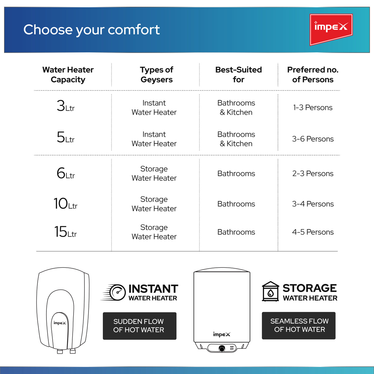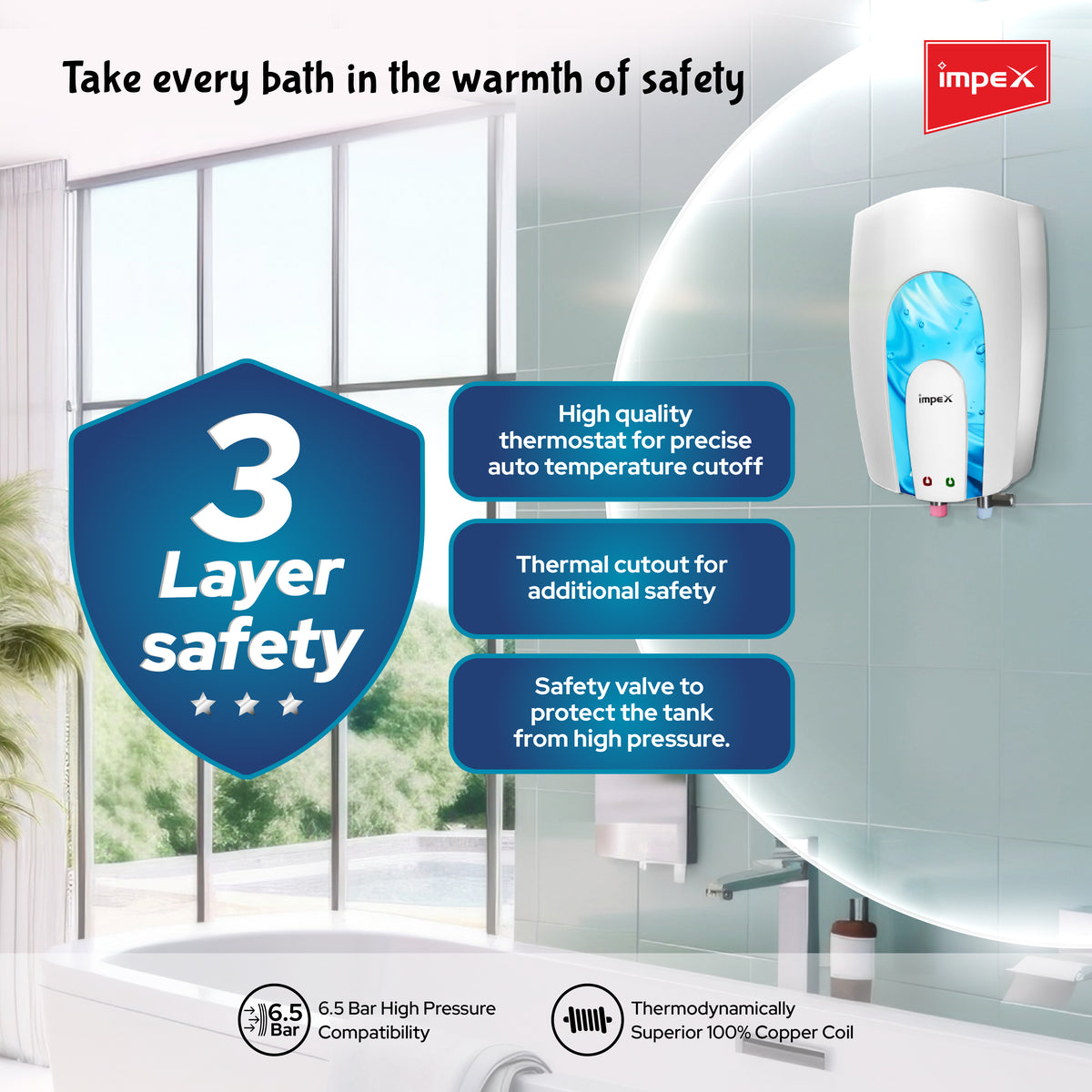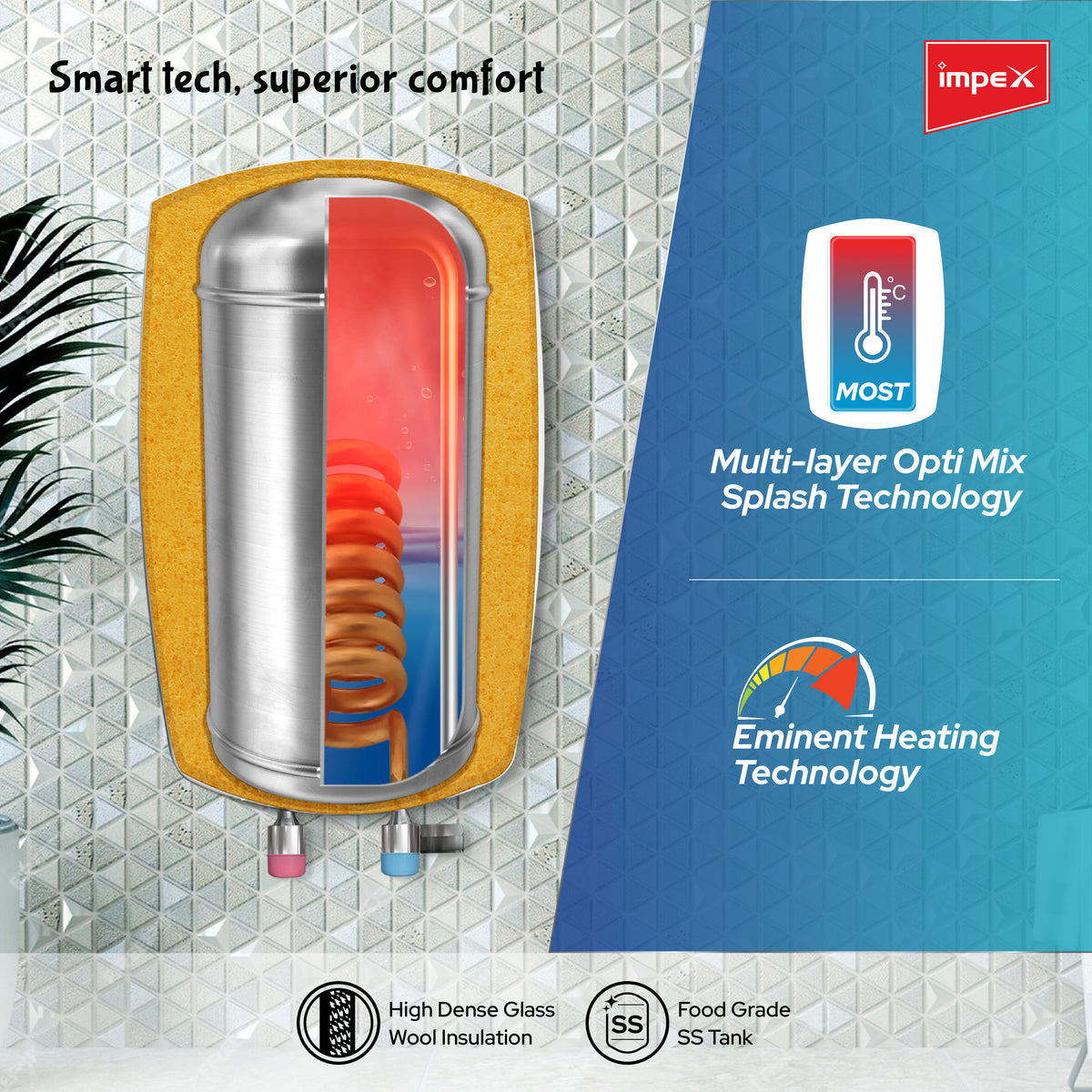 Impex INSTAH 3 Instant Water Heater - 3L, 3000W, High-Pressure 6.5 Bar, Rapid Heating, White