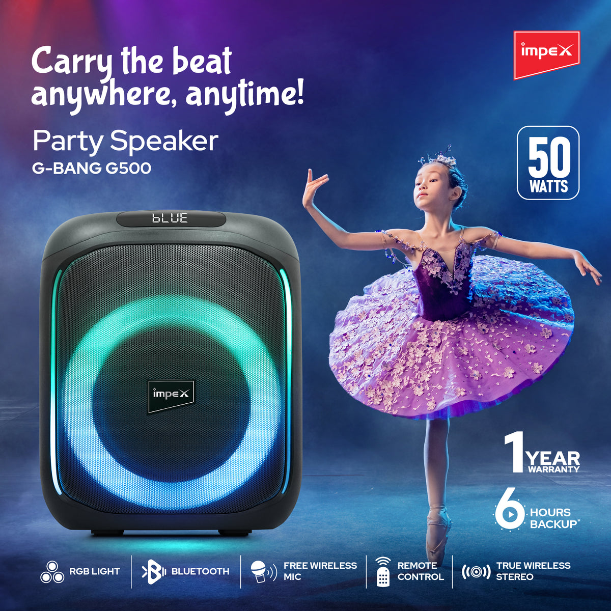 Impex Party Speaker G-Bang G500 Portable Speaker, 1 Year Warranty(Black)