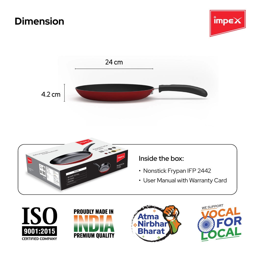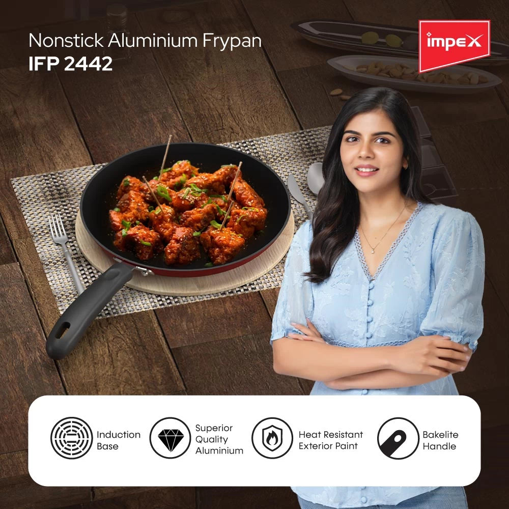 Impex IFP 2442 Induction Based Nonstick Aluminium Fry Pan (24 cm,Maroon)