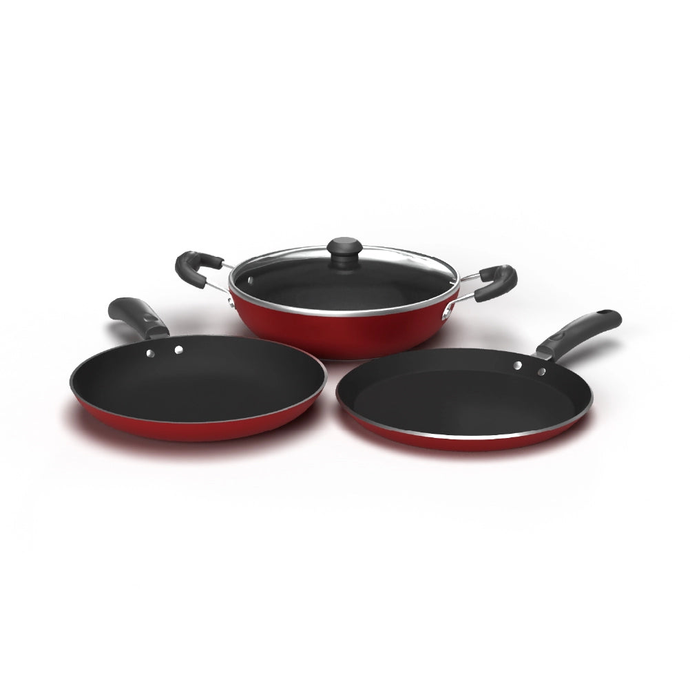 - Inclusions: Frypan, Tawa Pan, Kadai Pan