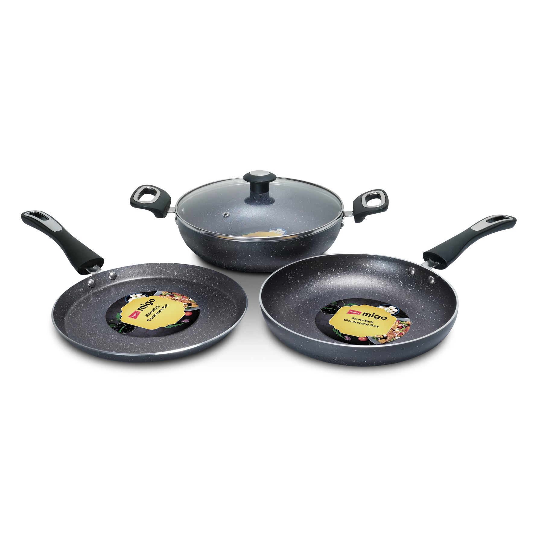 Included Components | 1 Tawa Pan, 1Fry pan, 1 Kadai Pan with lid |