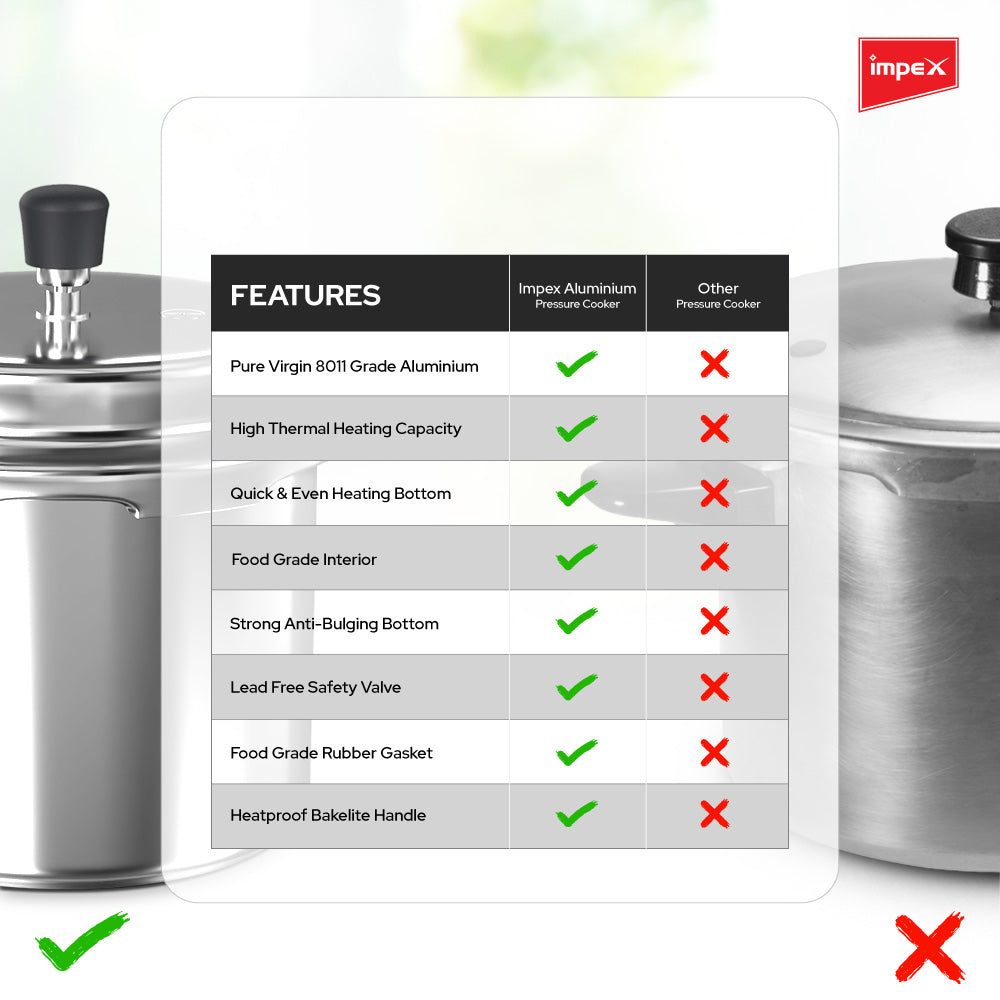 Introducing the Impex Norma 3 L Non-Induction Base Aluminium Pressure Cooker with Outer Lid in a sleek Silver finish. This pressure cooker is designed for efficiency and durability, offering a spacious 3-liter capacity to accommodate various cooking needs. The non-induction base ensures compatibility with traditional stovetops, making it a versatile addition to any kitchen.