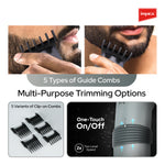 Precise Trimming: Comes with 5 clip-on comb attachments for a range of cutting levels (4, 8, 12, 16, and 20 mm).