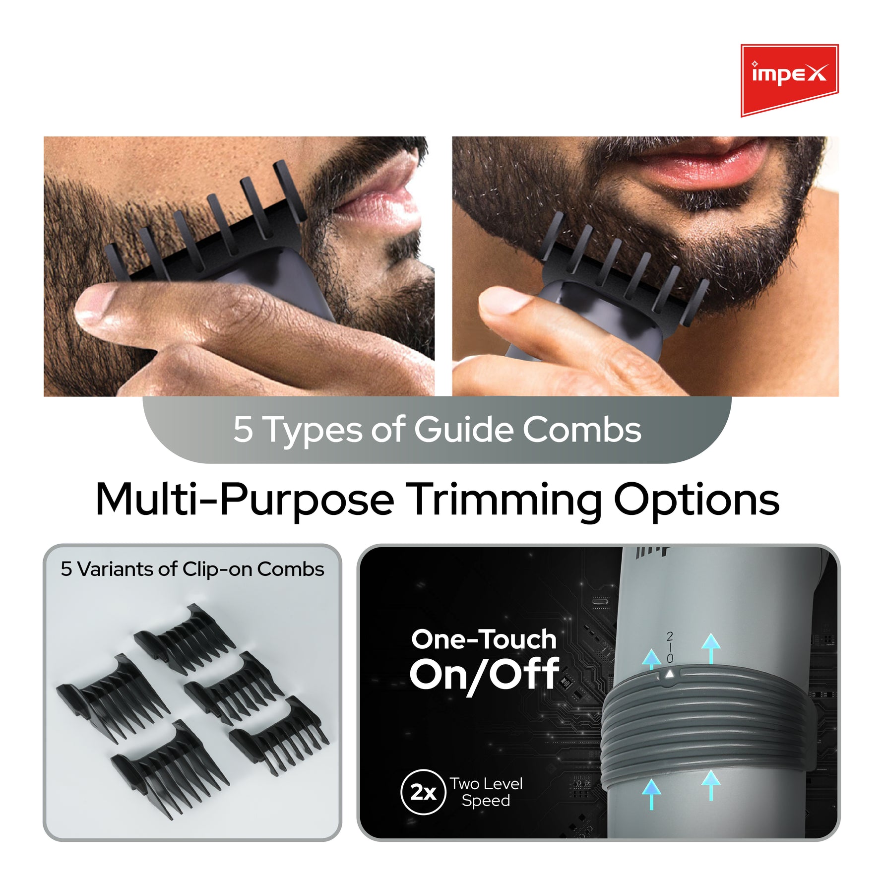 Impex TIDY IHC5 Cordless Hair Trimmer for Men with 5 Clip-on Combs and Charging Stand (Silver)
