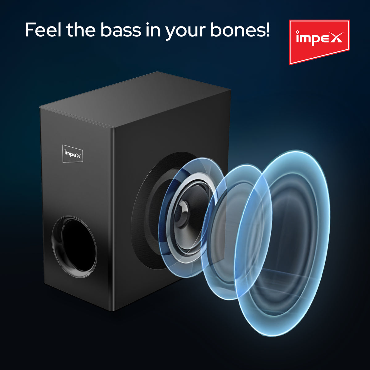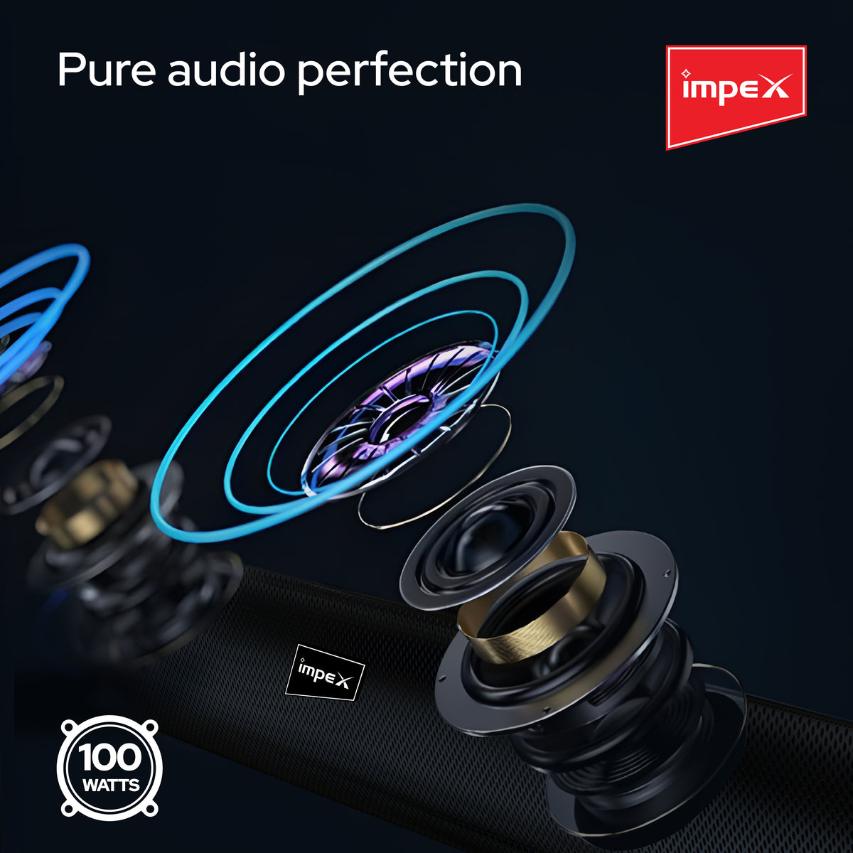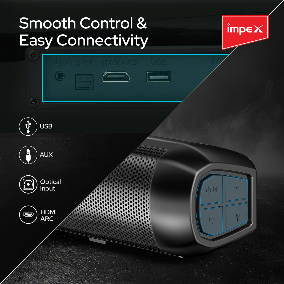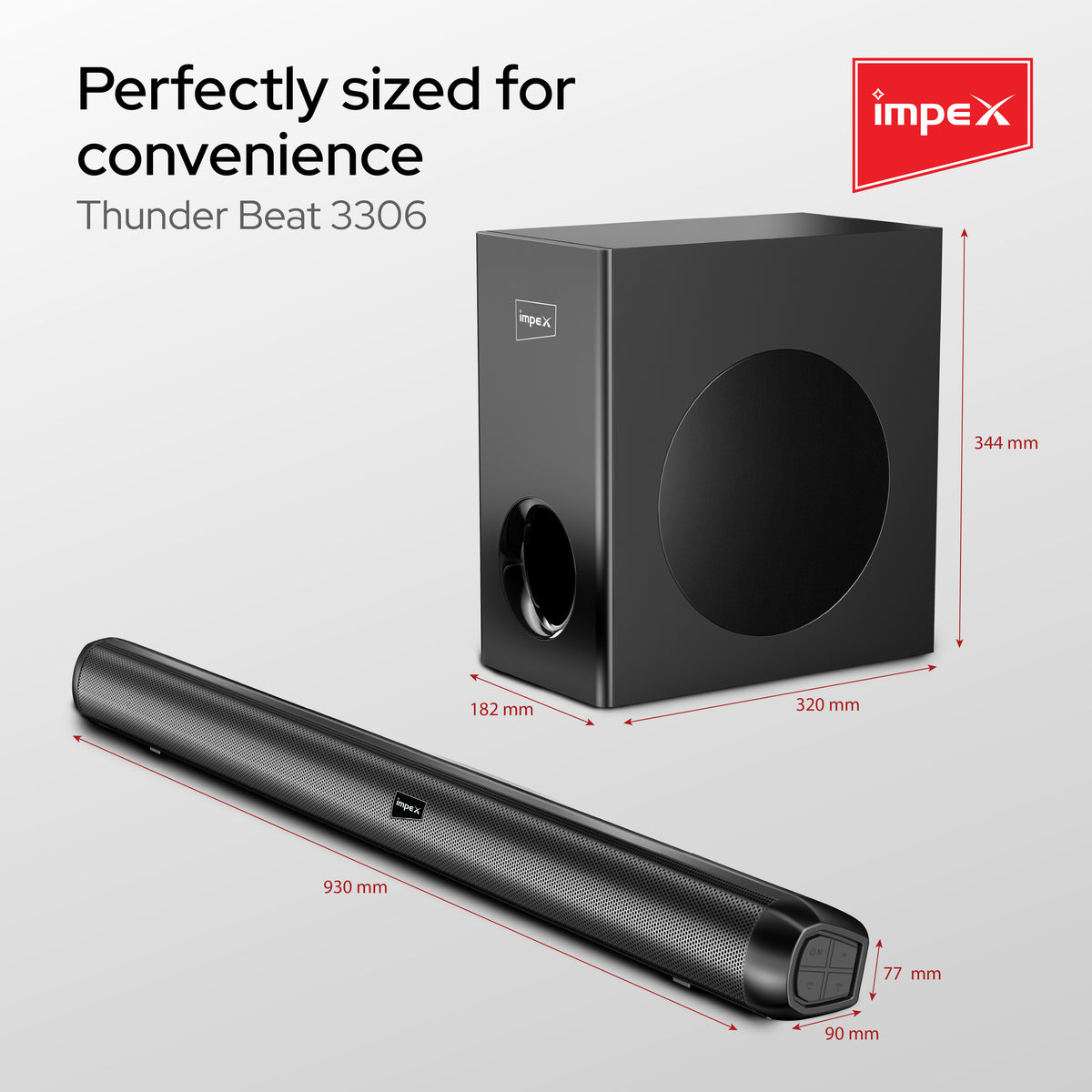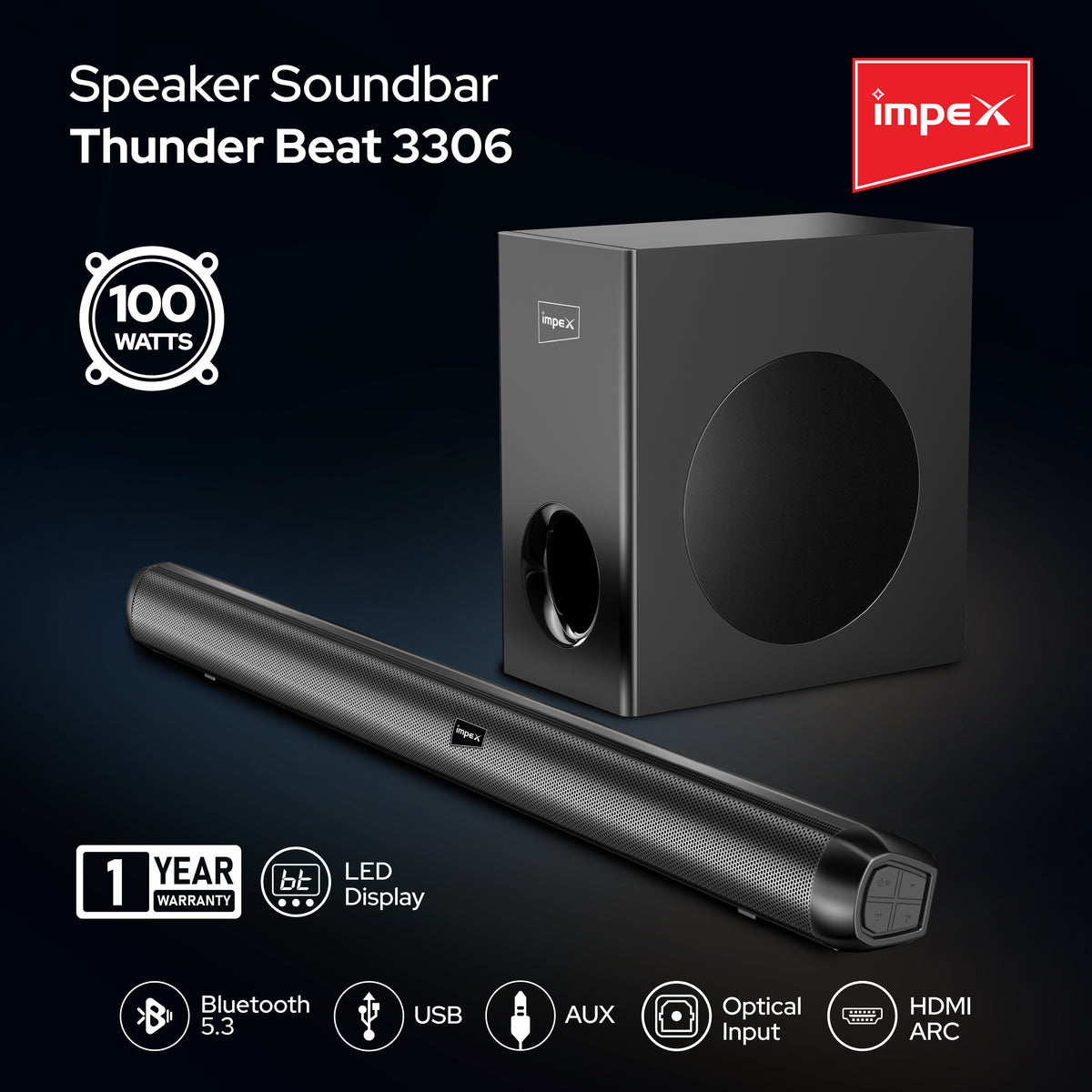 Impex Thunder Beat 3306 100W Soundbar with Subwoofer, Bluetooth 5.3, Multiple Inputs, Wall Mountable - Black | 1 Year Warranty