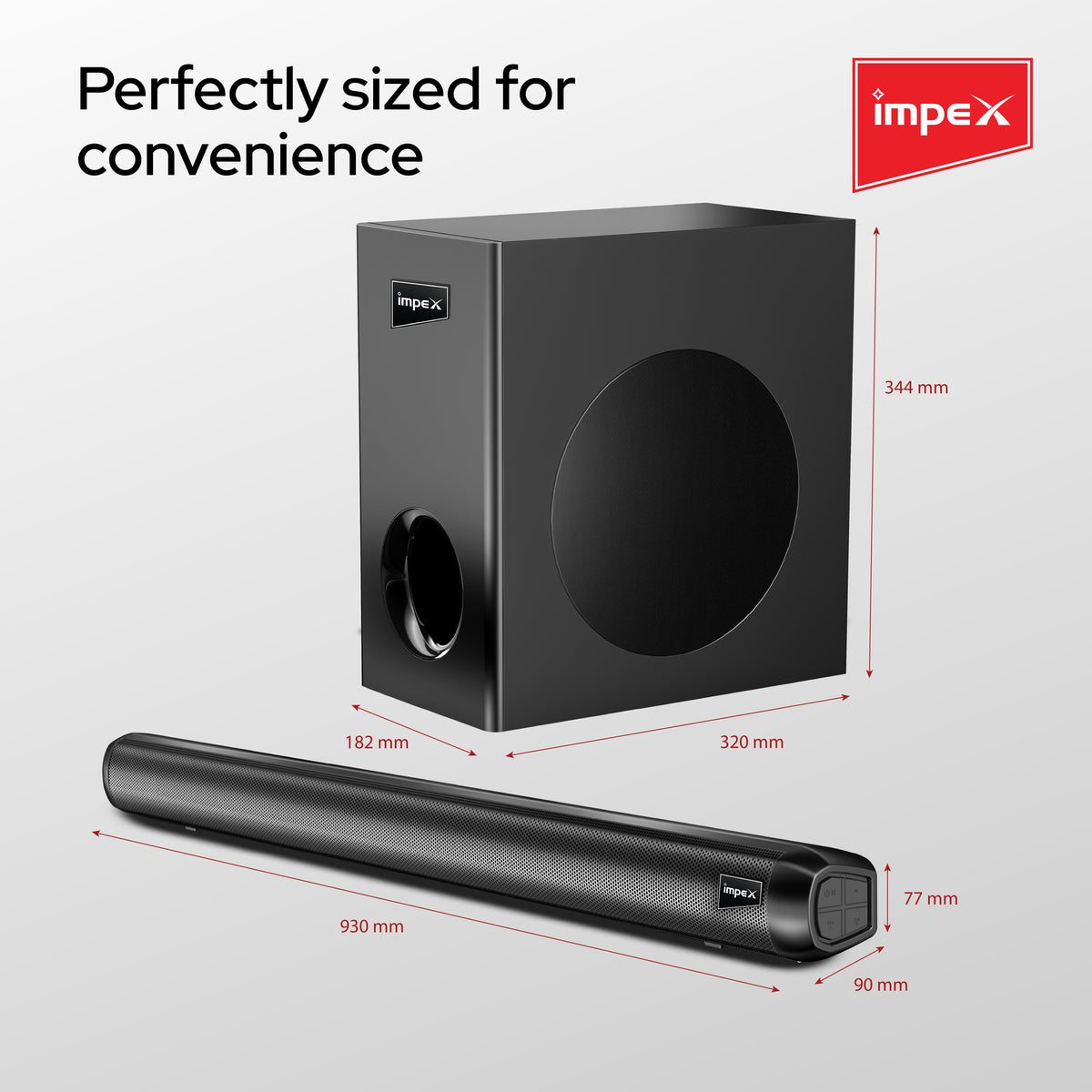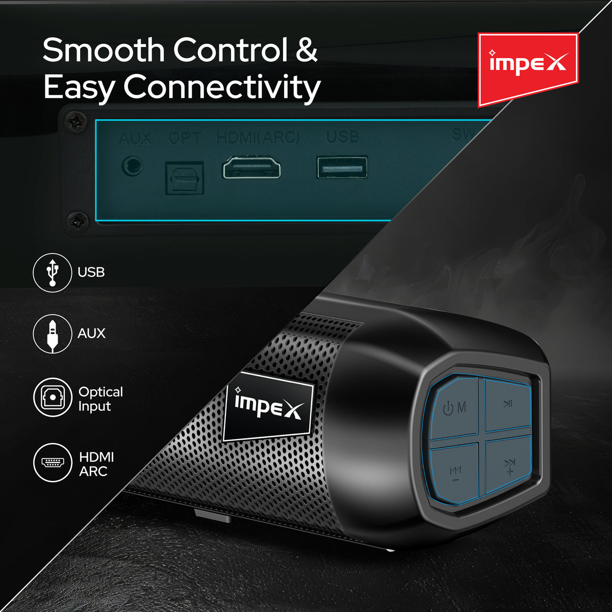Elevate your home audio with the Impex Thunder Beat 3308 Soundbar. This 140W system delivers powerful, immersive sound with its soundbar and dedicated subwoofer. Enjoy versatile connectivity with Bluetooth 5.3, AUX, Optical, ARC, and USB inputs. The sleek black design and wall-mountable option make it a stylish and practical addition to any entertainment setup.