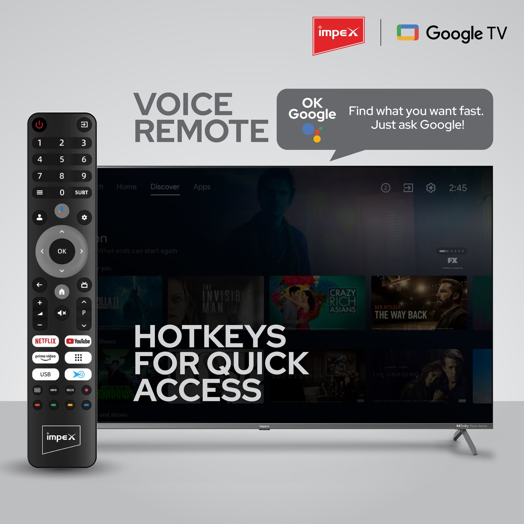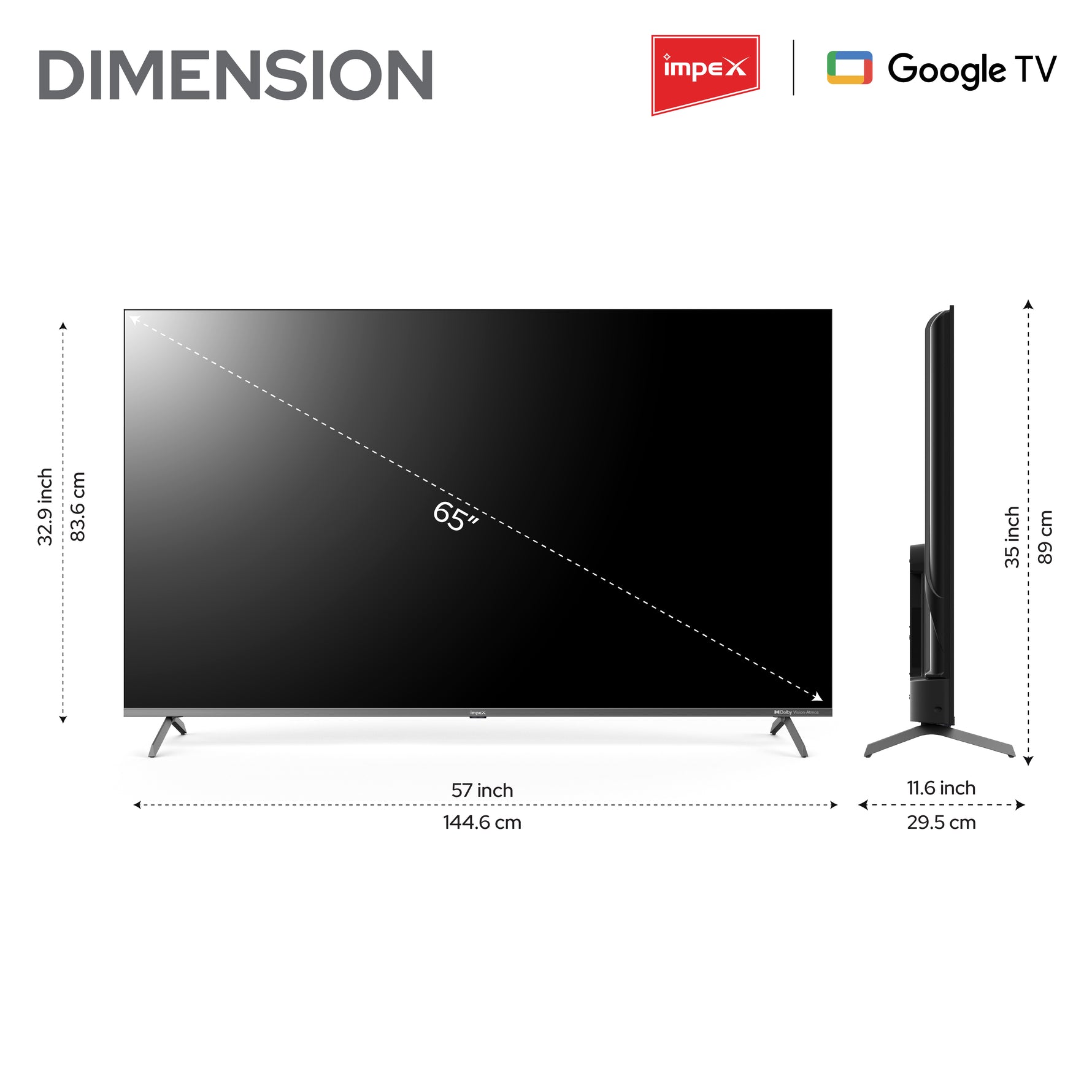 IMPEX|evoQ 65S4QLC3| 65"|4K QLED|GoogleTV|HDR10|120Hz DLG|Dolby Vision|Dolby ATMOS|ALLM|MEMC|24W SPEAKER|4 Year Warranty