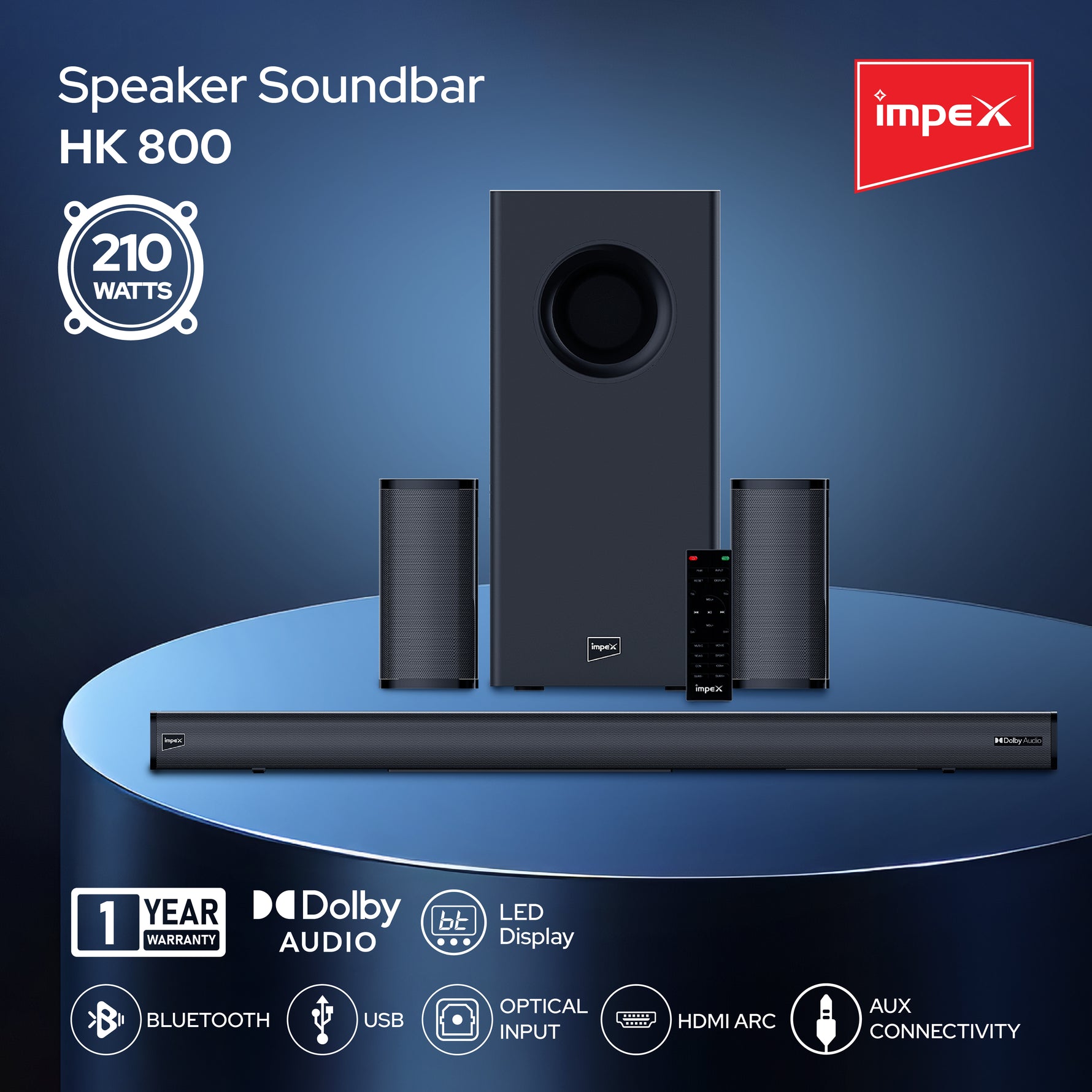 Impex BoomBar HK800 210W 2.1 Channel Soundbar with Wireless Sub-Woofer, Surround Speakers, Dolby Audio, and 1-Year Warranty (Black)