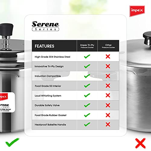 Impex Serene Stainless Steel Triply Pressure Cooker Outer Lid 3 Ltr, silver