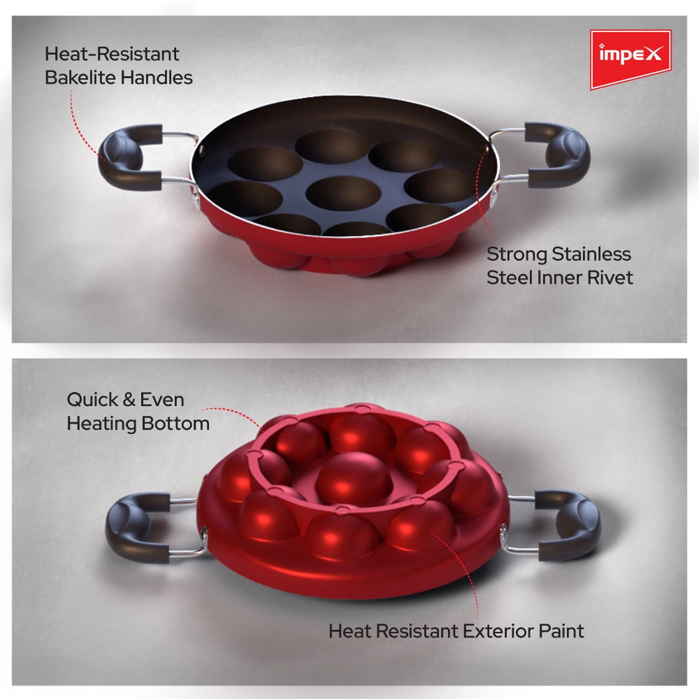 Impex Premium Non Stick Paniyarakkallu (Unniyappa Chatty, 9 Pits)