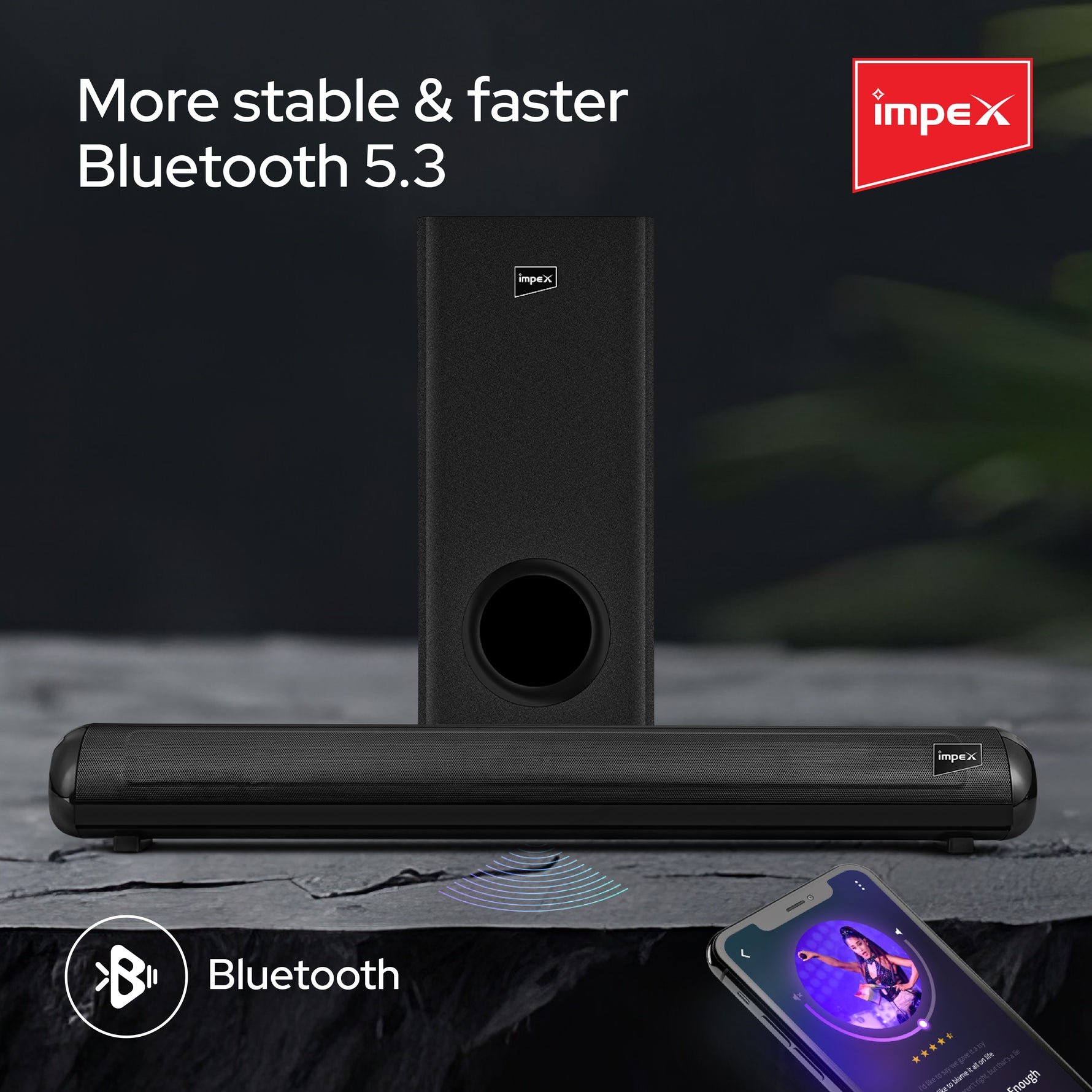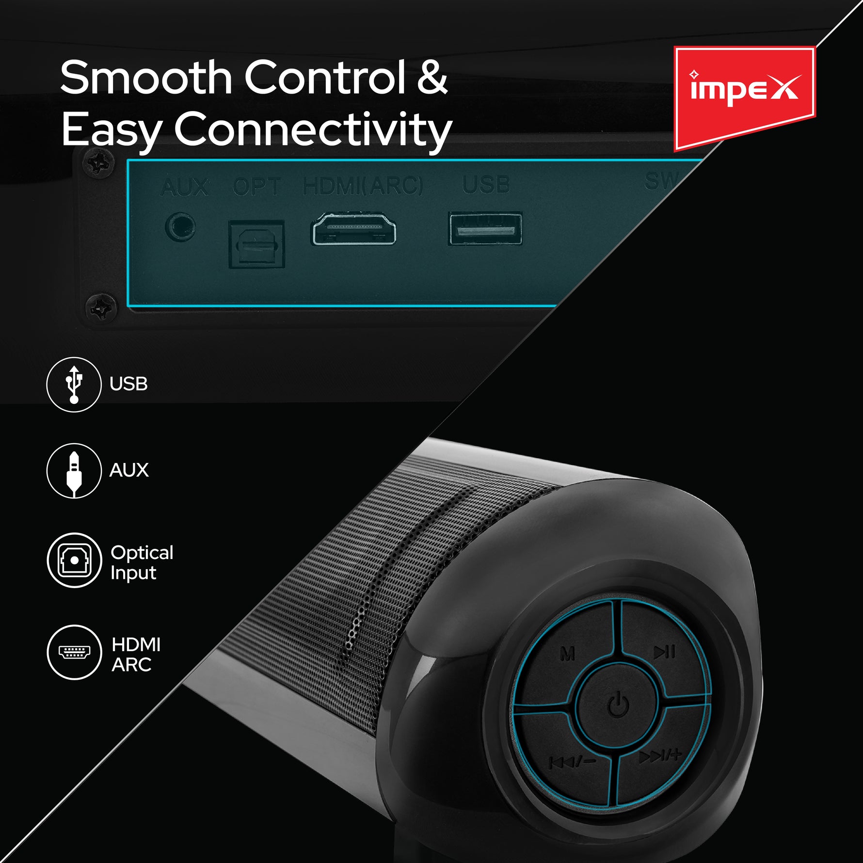 Impex TB 443 80W Soundbar with Subwoofer, Bluetooth 5.3, Multiple Inputs, Wall Mountable - Black | 1 Year Warranty