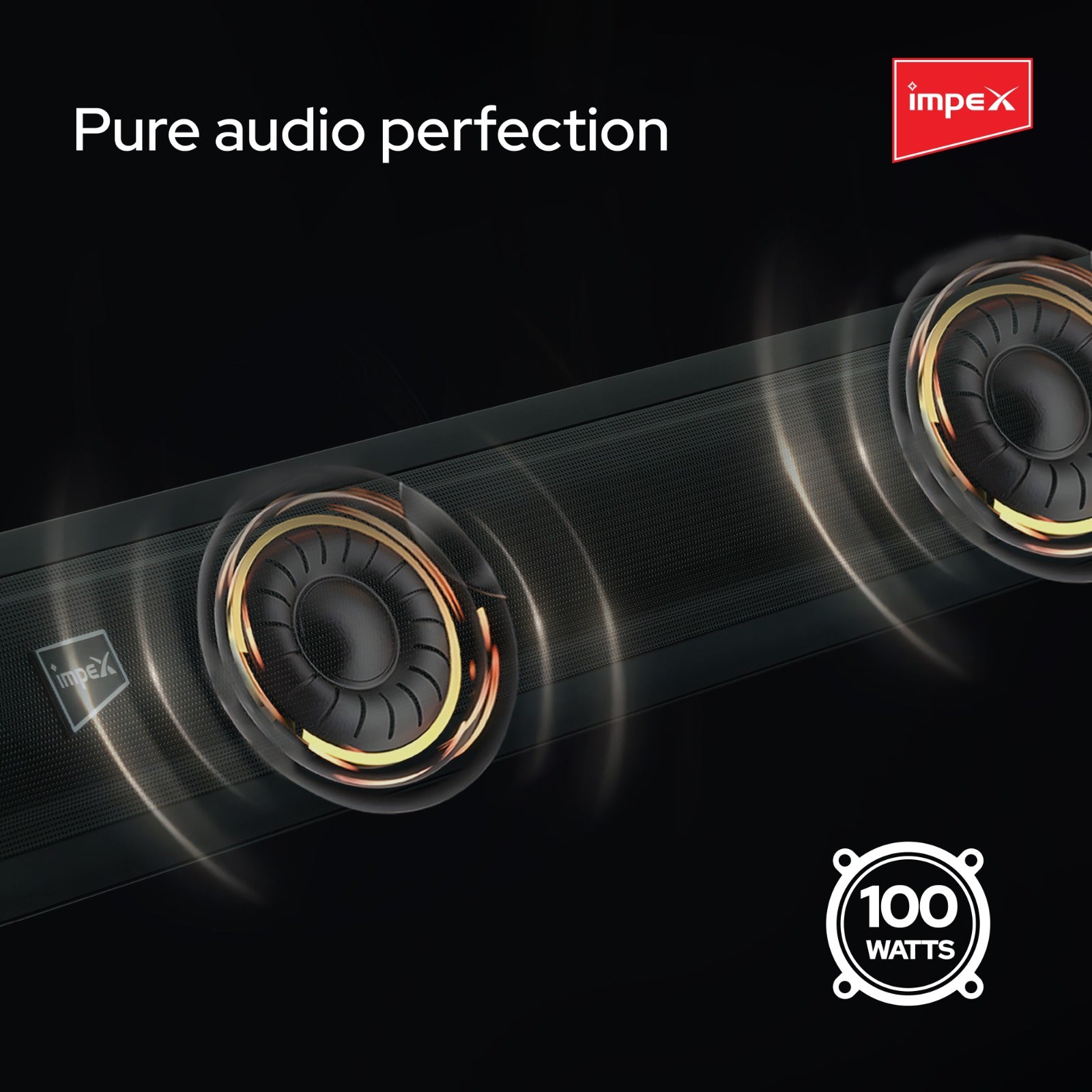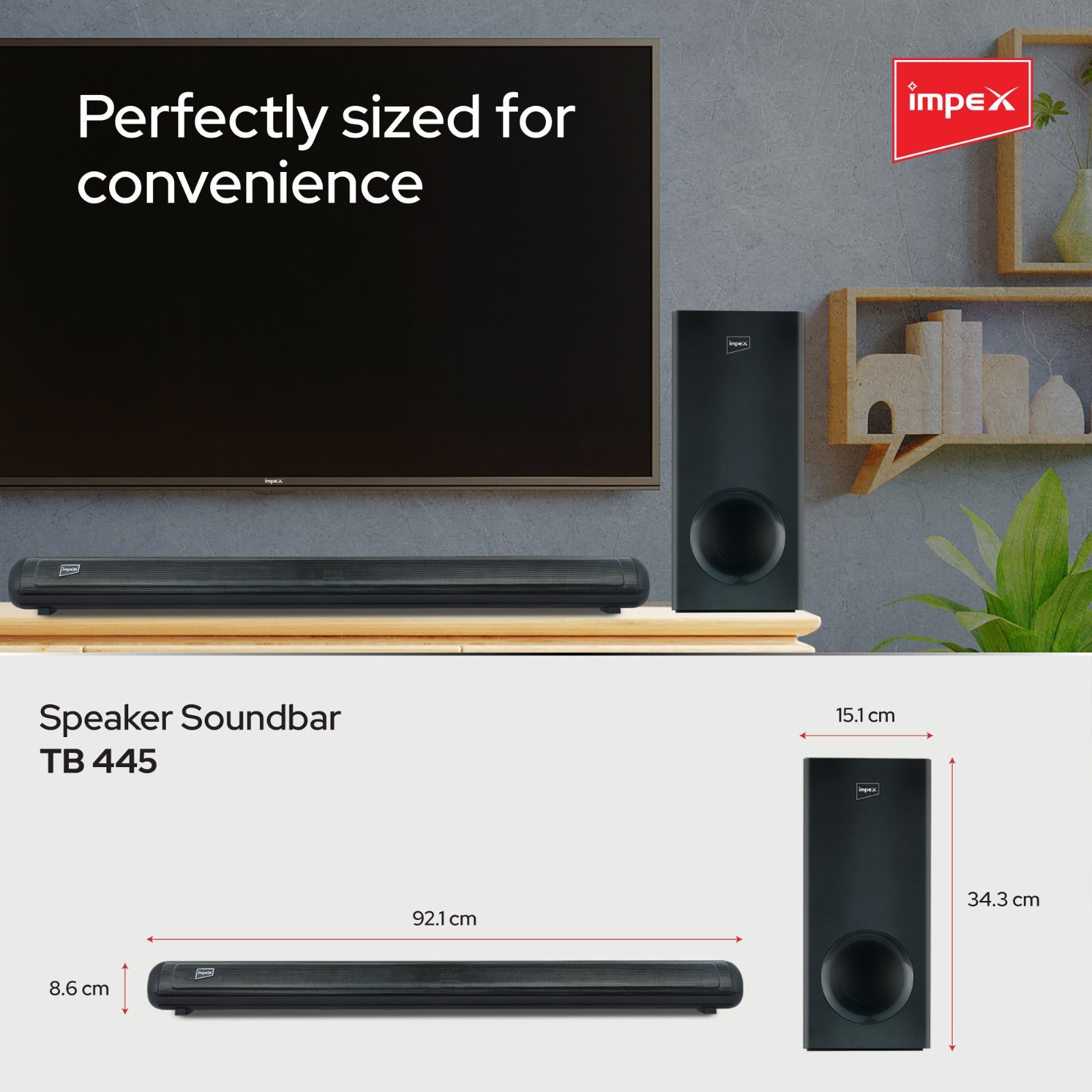 Impex TB 445 100W Soundbar with Subwoofer, Bluetooth 5.3, Multiple Inputs, Wall Mountable - Black | 1 Year Warranty