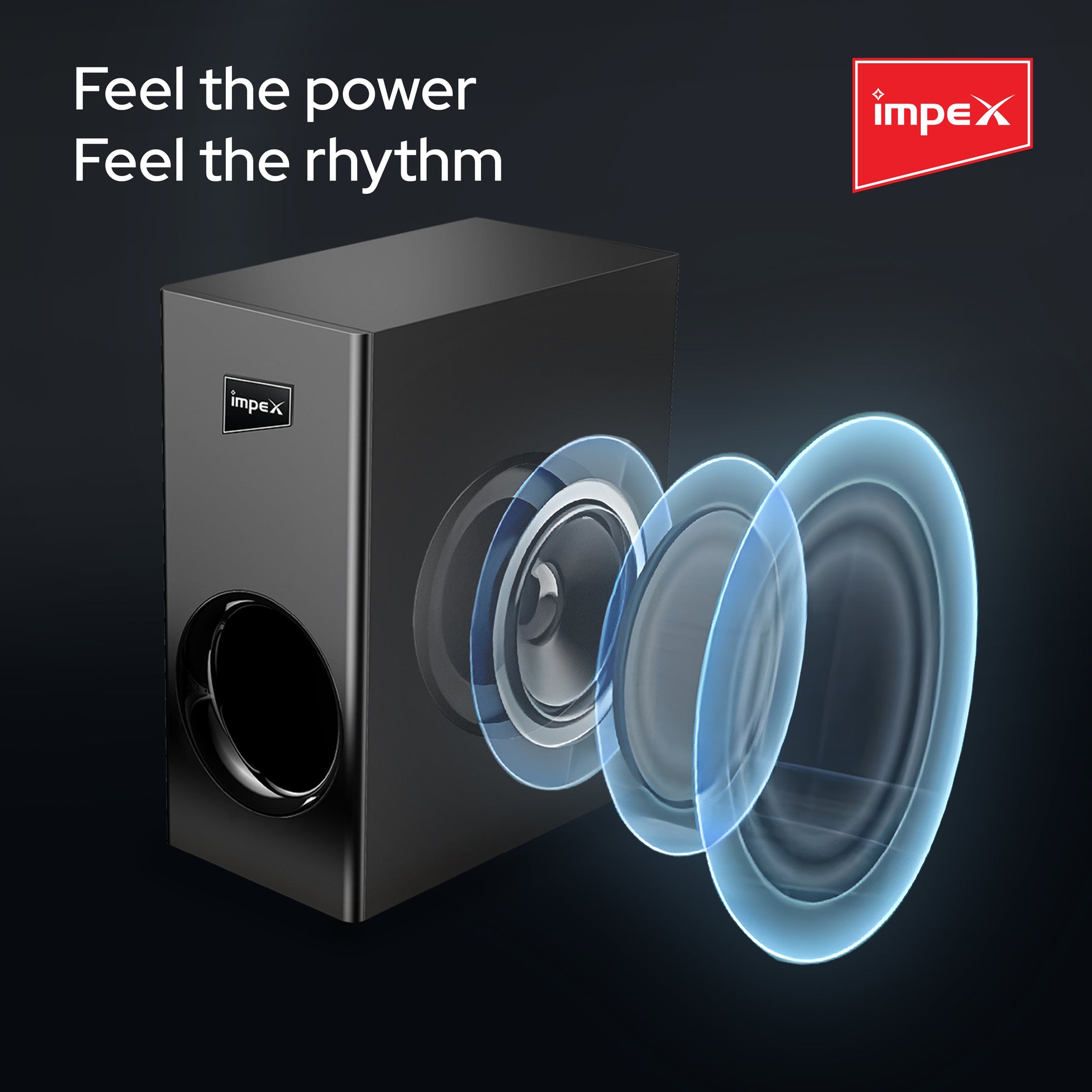 Enhance your home audio experience with the Impex Thunder Beat 3304 Soundbar. This 80W system includes a soundbar and subwoofer for immersive, room-filling sound. Enjoy versatile connectivity with Bluetooth 5.3, AUX, Optical, ARC, and USB inputs. The sleek black design complements any home décor, and the wall-mountable option adds to its versatility.